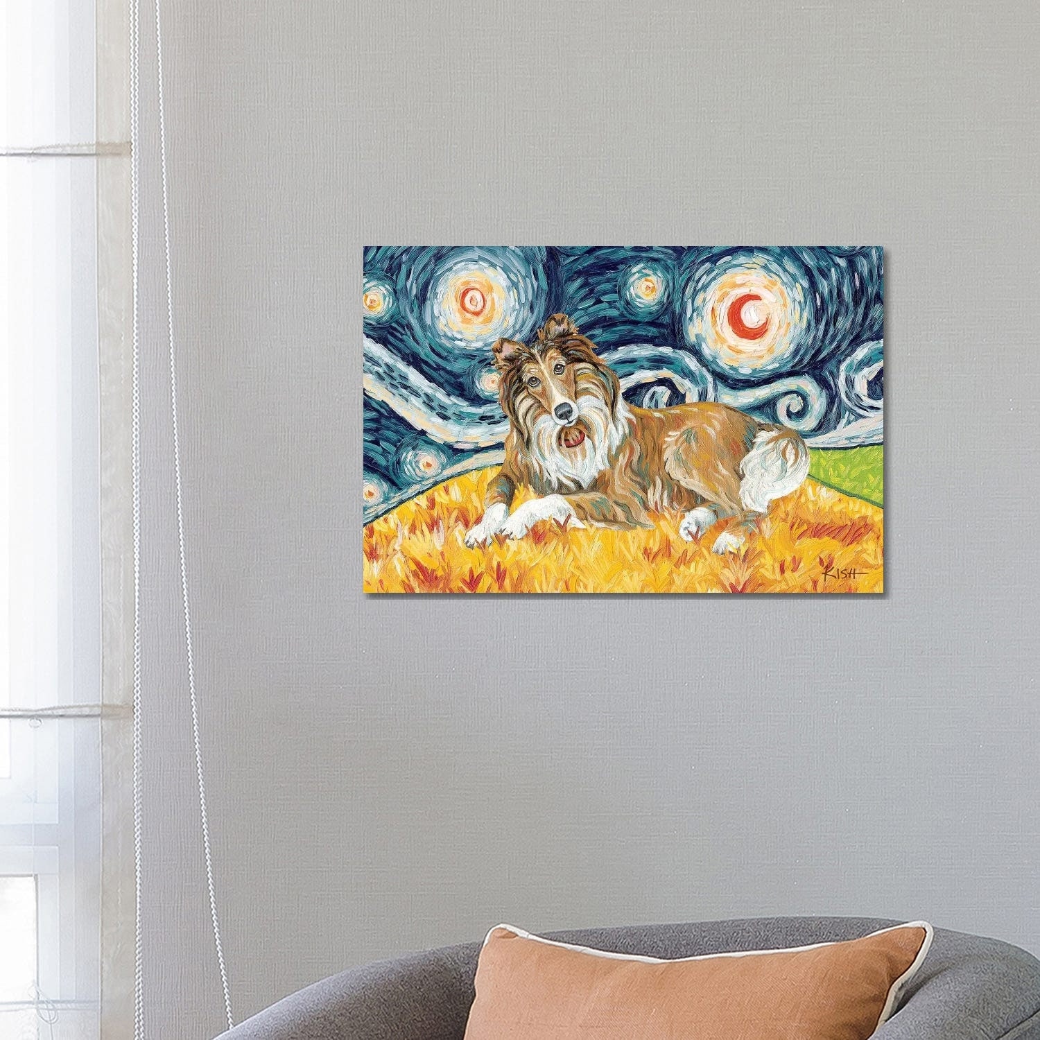 iCanvas "Collie On A Starry Night White Stripe" by Gretchen Kish Serrano Canvas Print