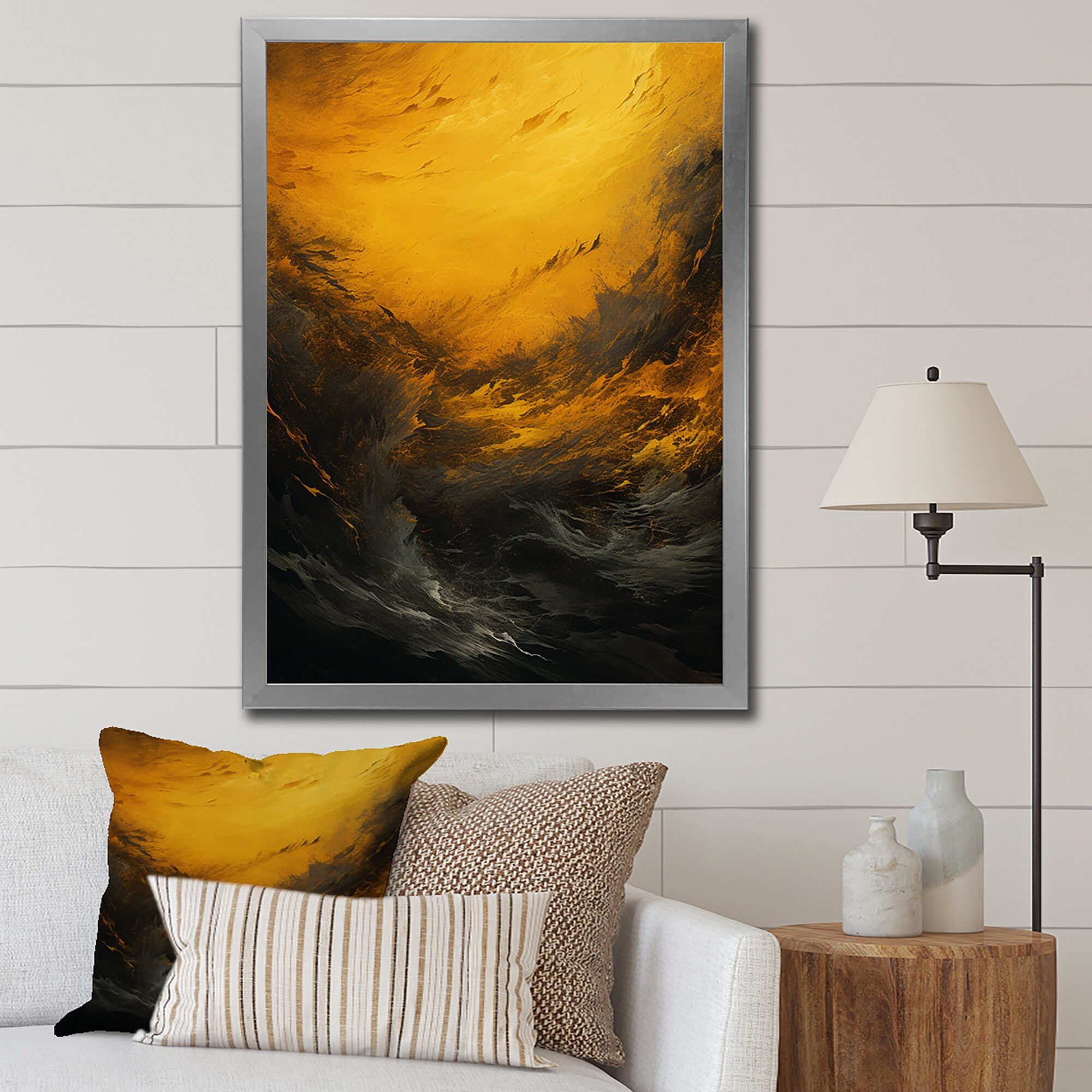Designart "Yellow Whirling Winds I" Storms Framed Wall Decor