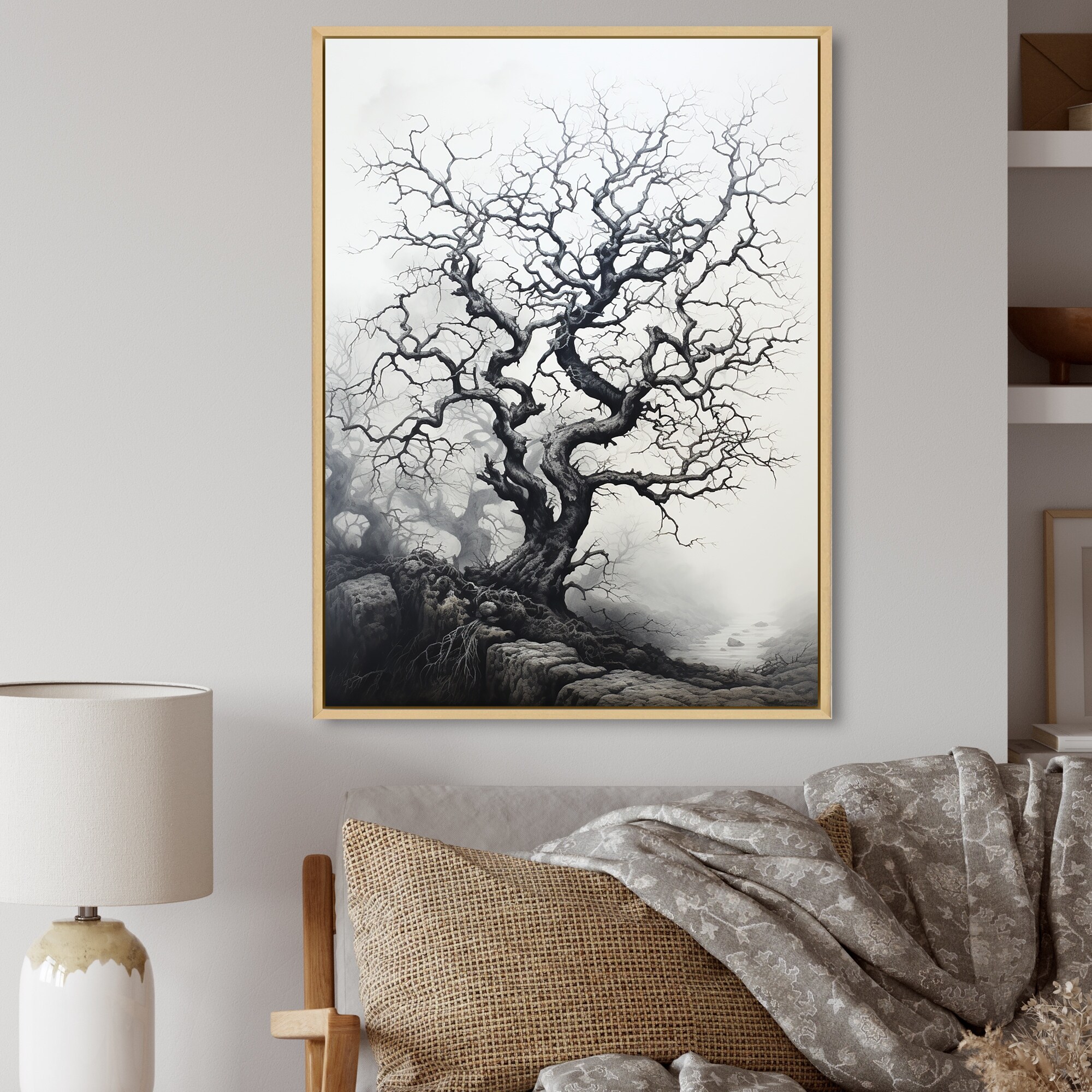 Designart "Grey White Tree Whispering Winds" Landscape Trees Framed Canvas Wall Art