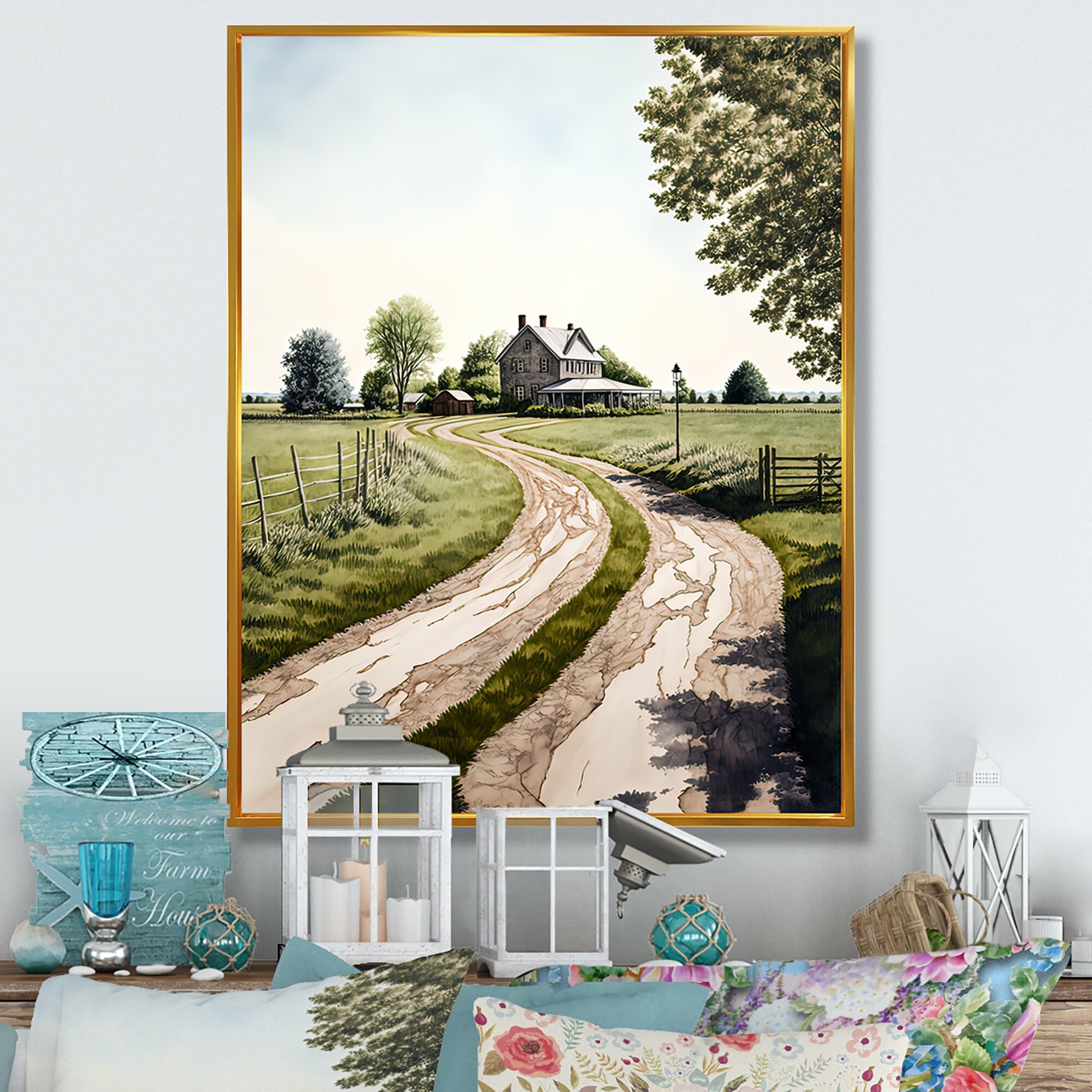 Designart "Winding Path Leading Up to A Homestead II" Farmhouse / Country Framed Canvas Art Print