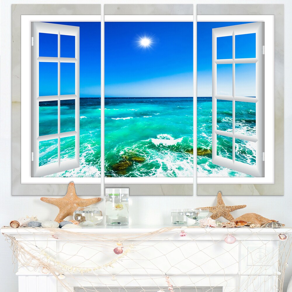 Designart "Open Window to Wavy Ocean" Sea & Shore Canvas Wall Art Print
