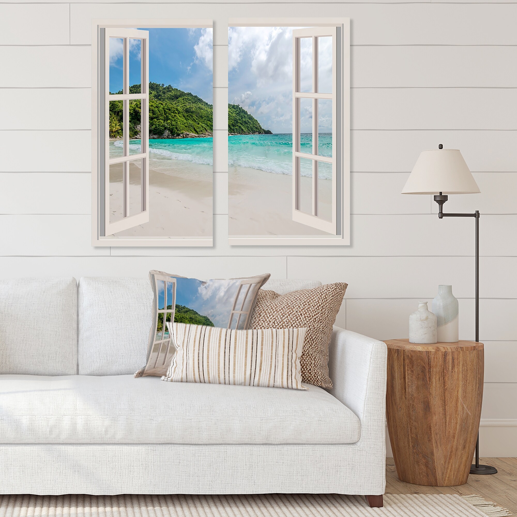 Designart "Open Window to Calm Seashore" Seashore Canvas Wall Art Print 2 Piece Set
