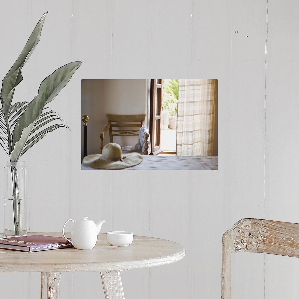 "Hat on bed by open window" Poster Print - Multi