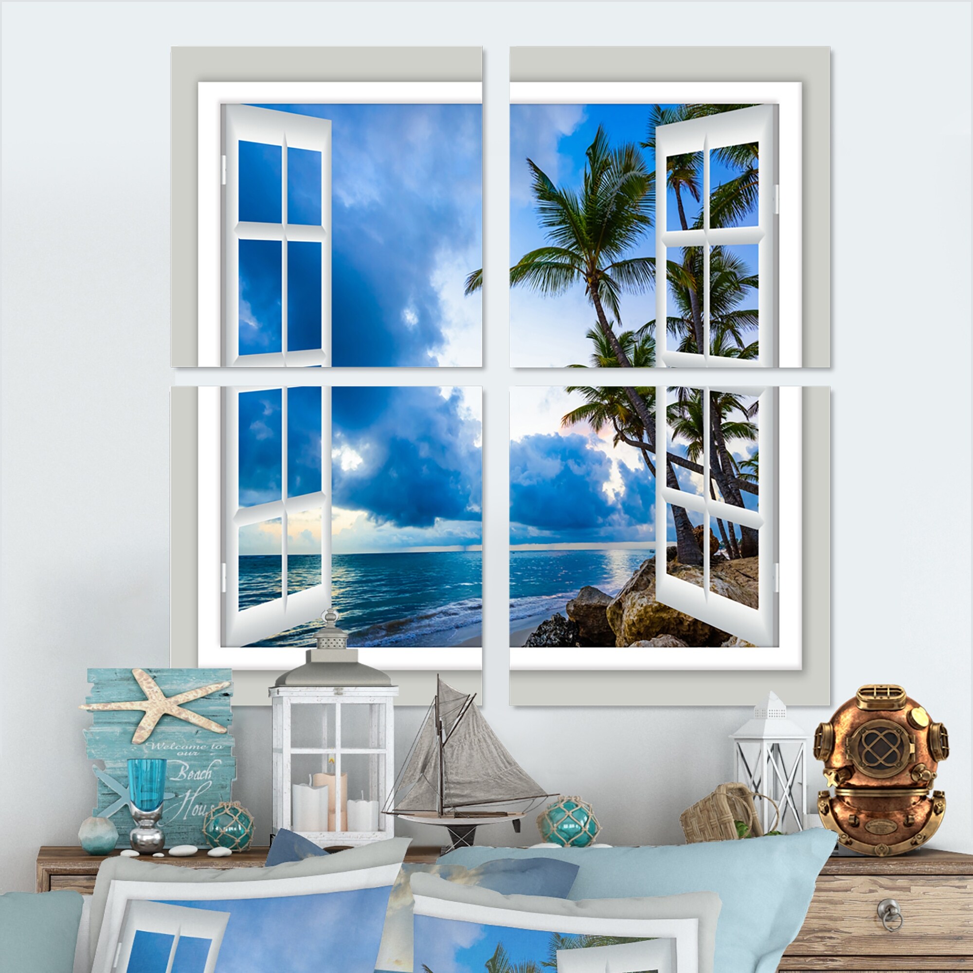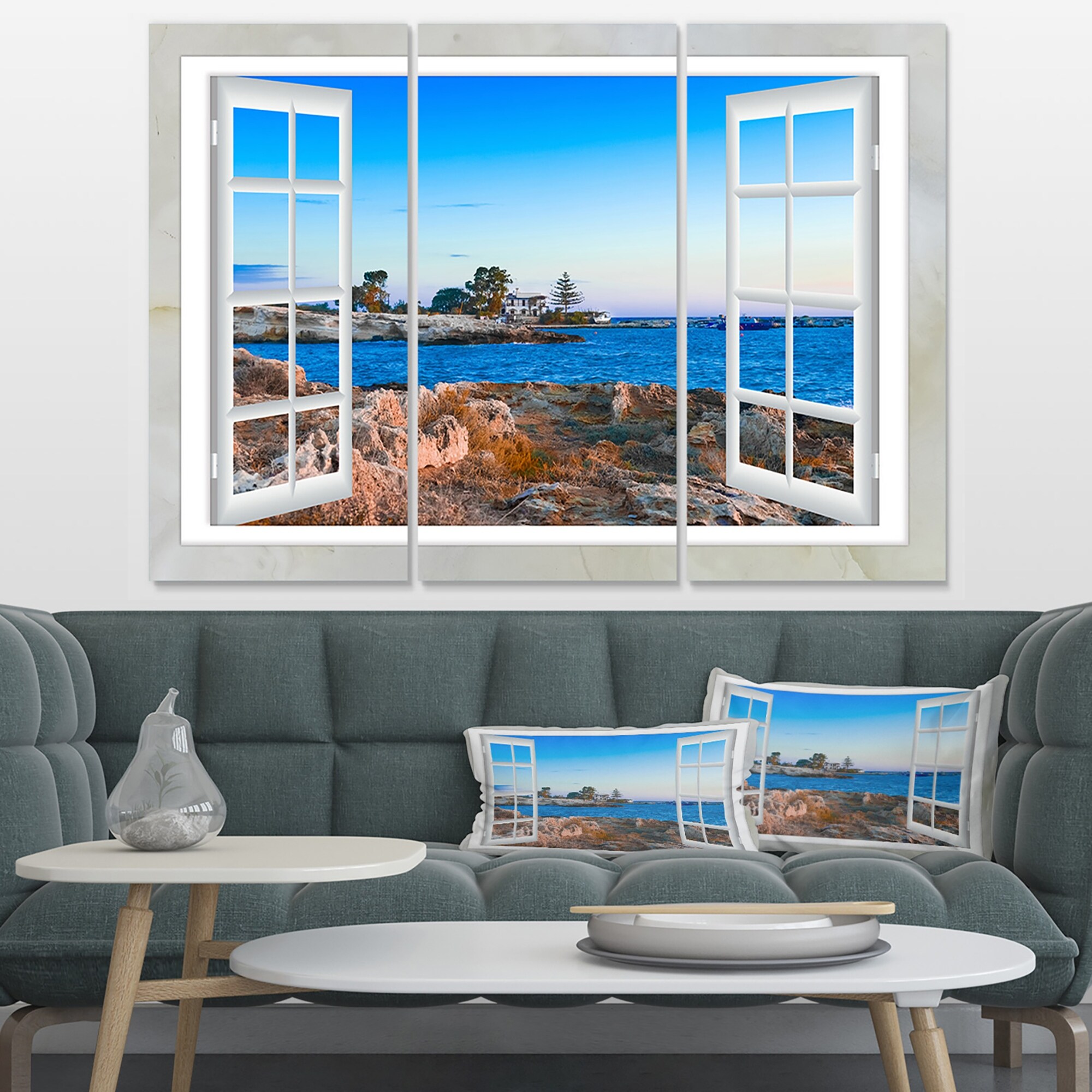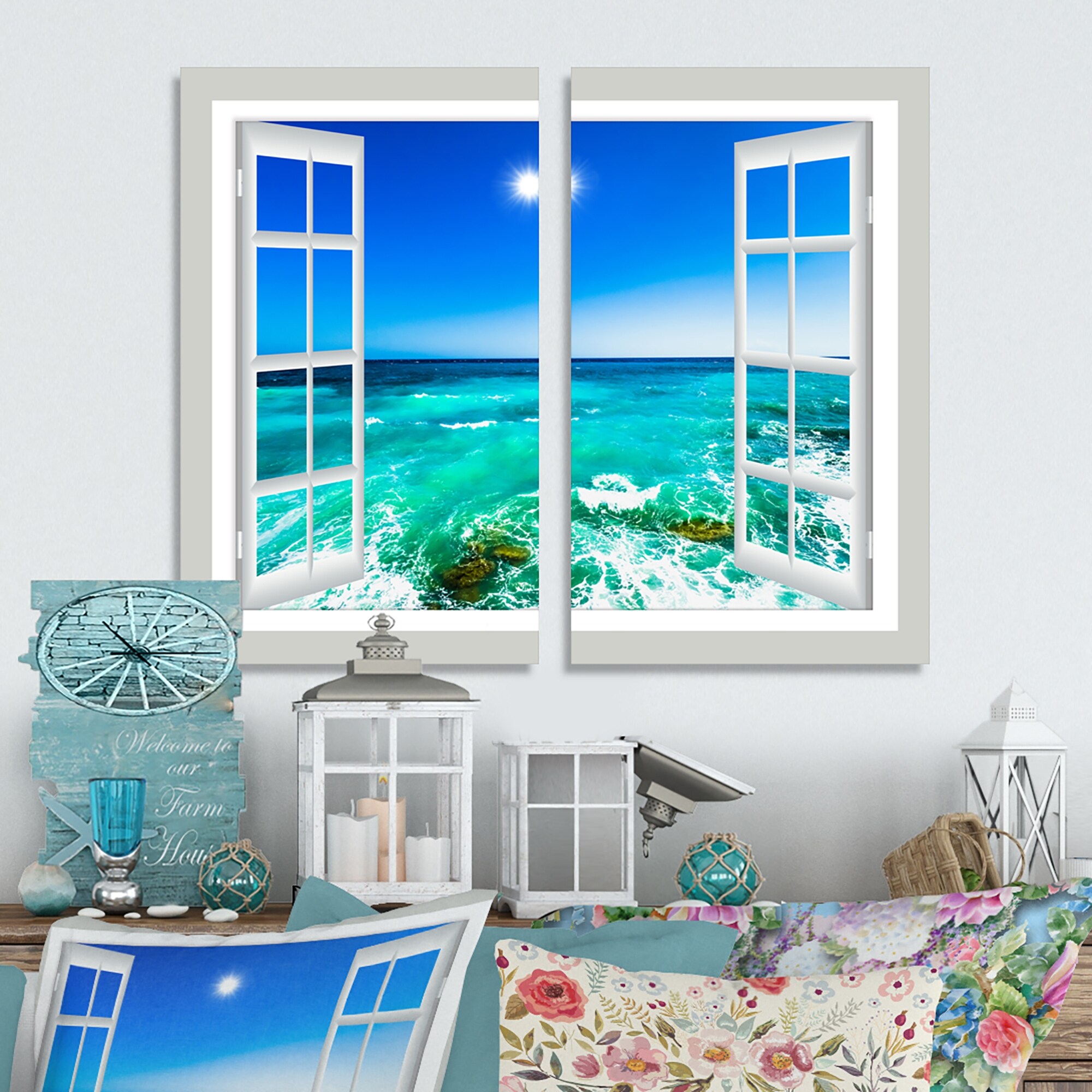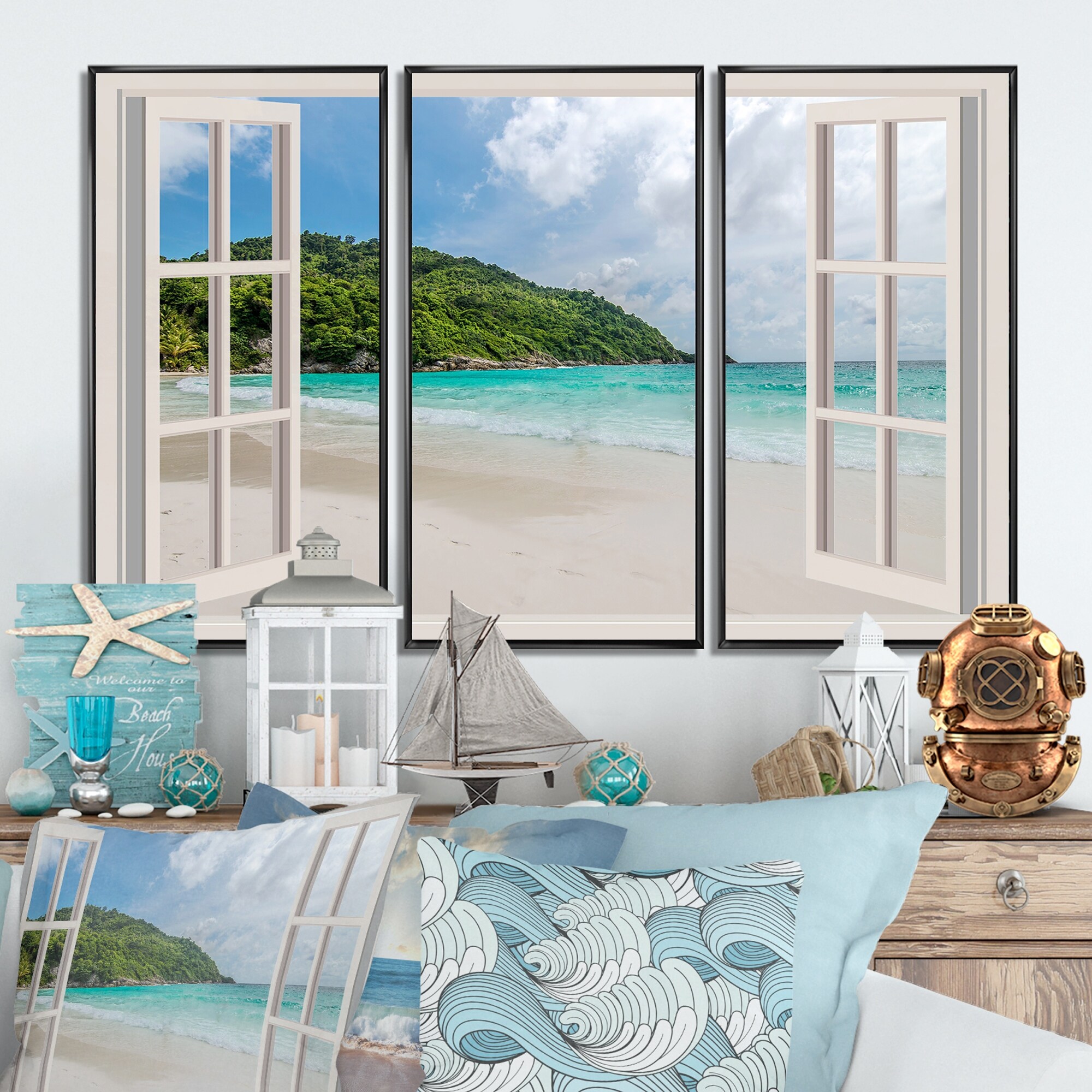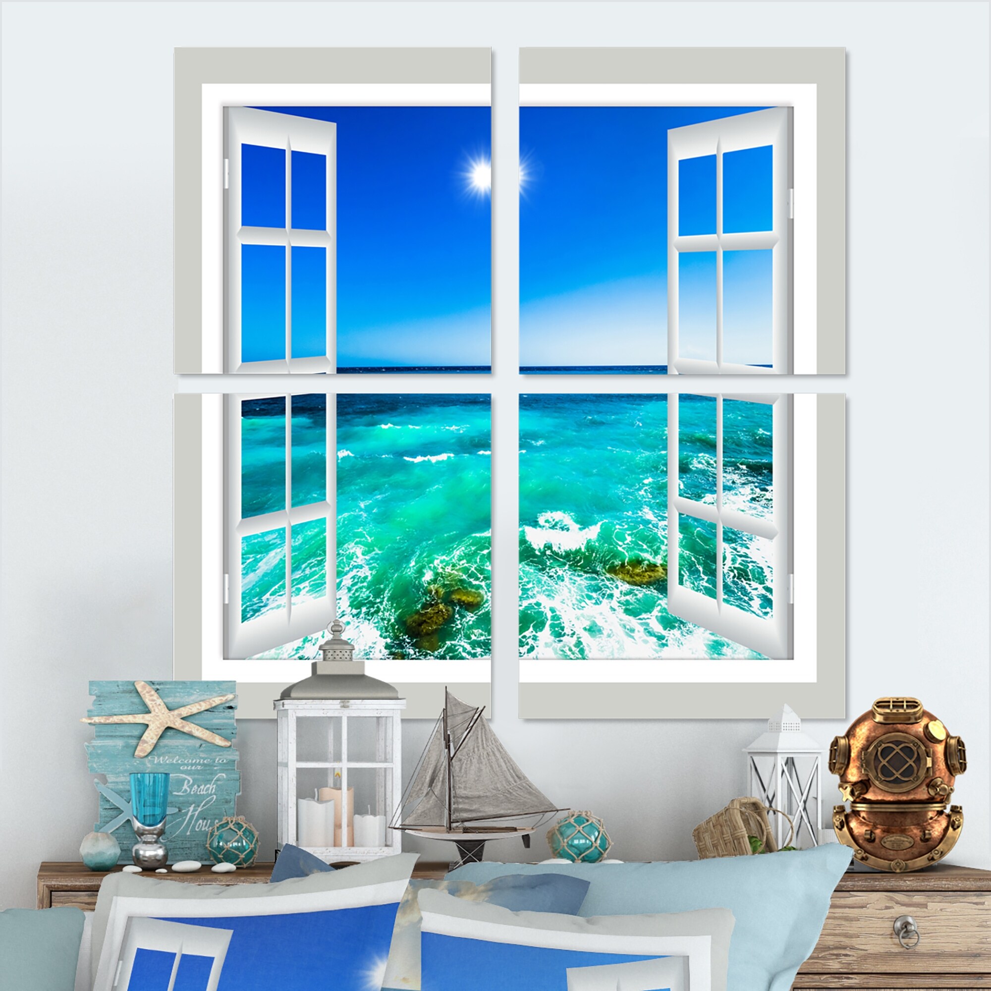 Open Window to Calm Seashore - Extra Large Seashore Canvas Art