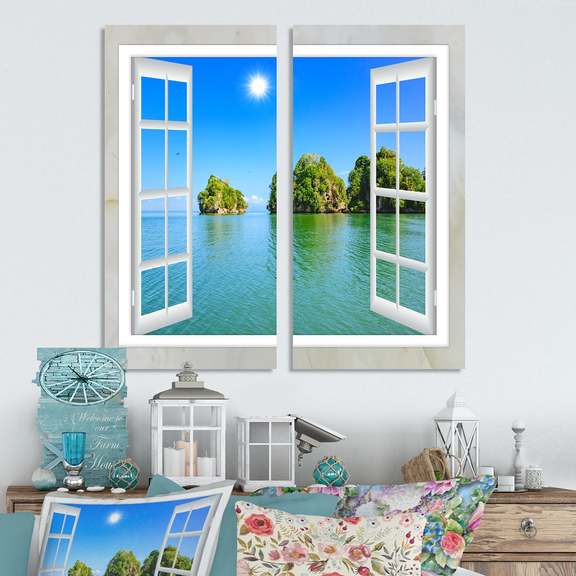 Designart "Open Window to Ocean Islets" Landscape Canvas Wall Art Print 2 Piece Set
