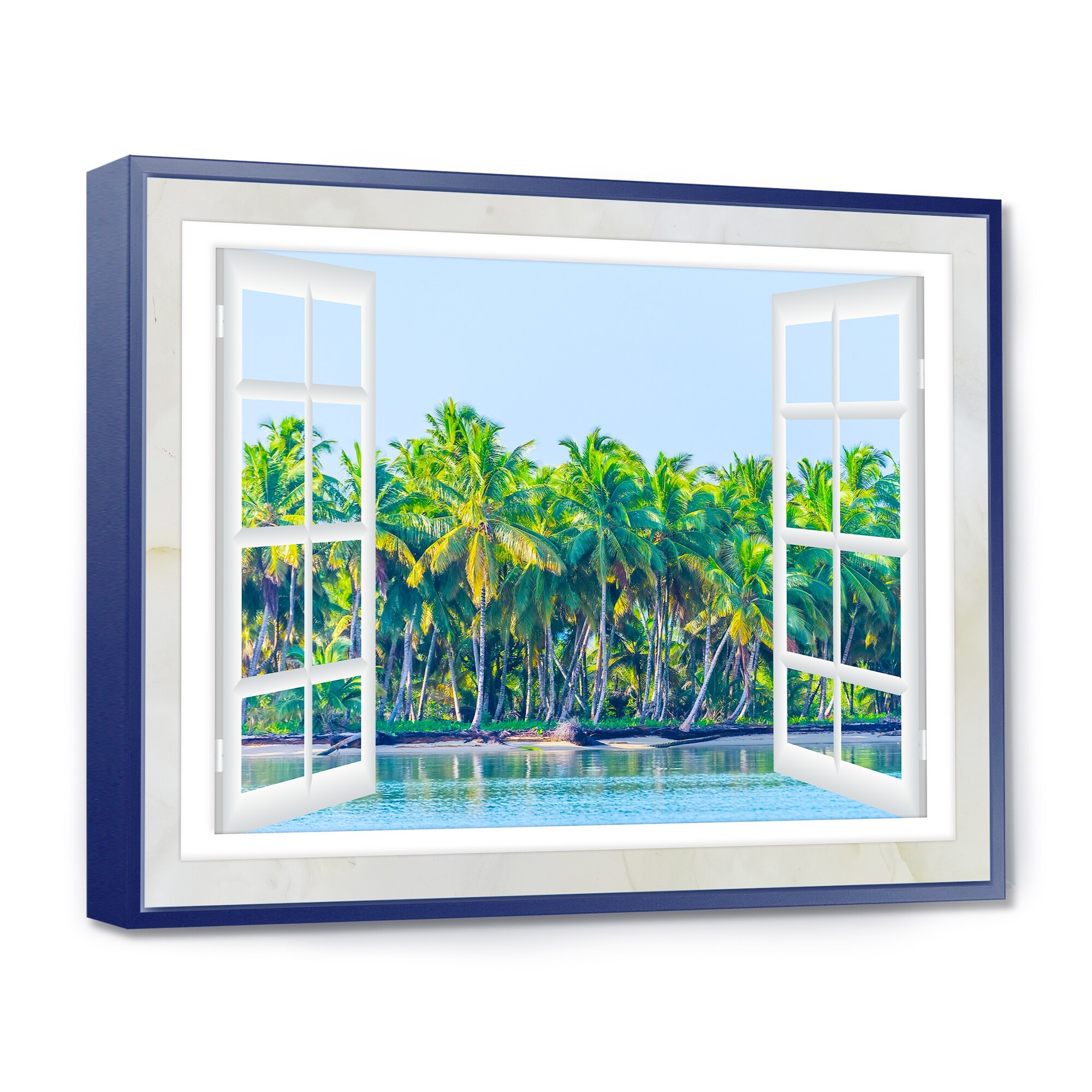 Window Open to Beach with Palm - Extra Large Seashore Canvas Art
