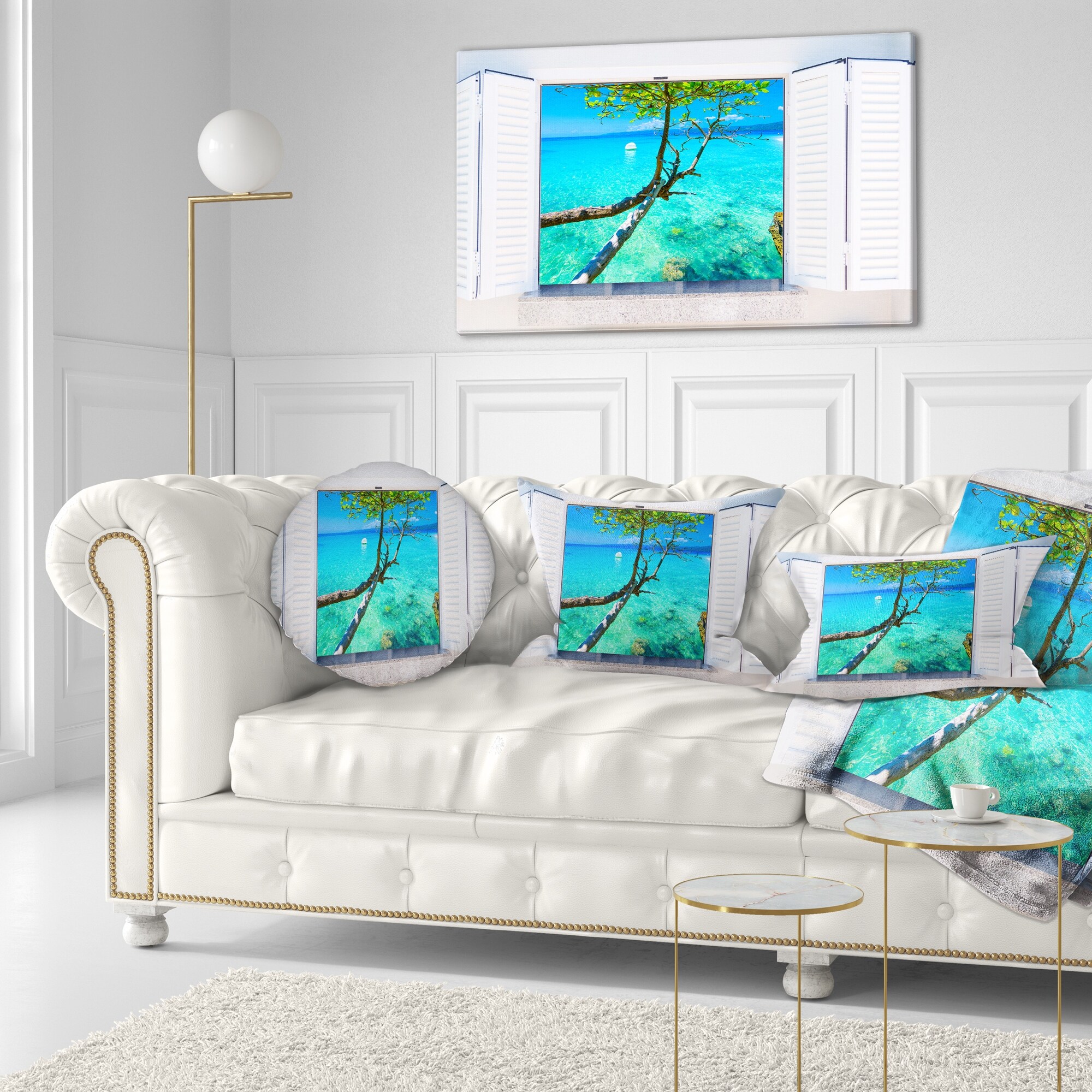 Designart "Open Window to Blue Seashore" Oversized Landscape Wall Art Print
