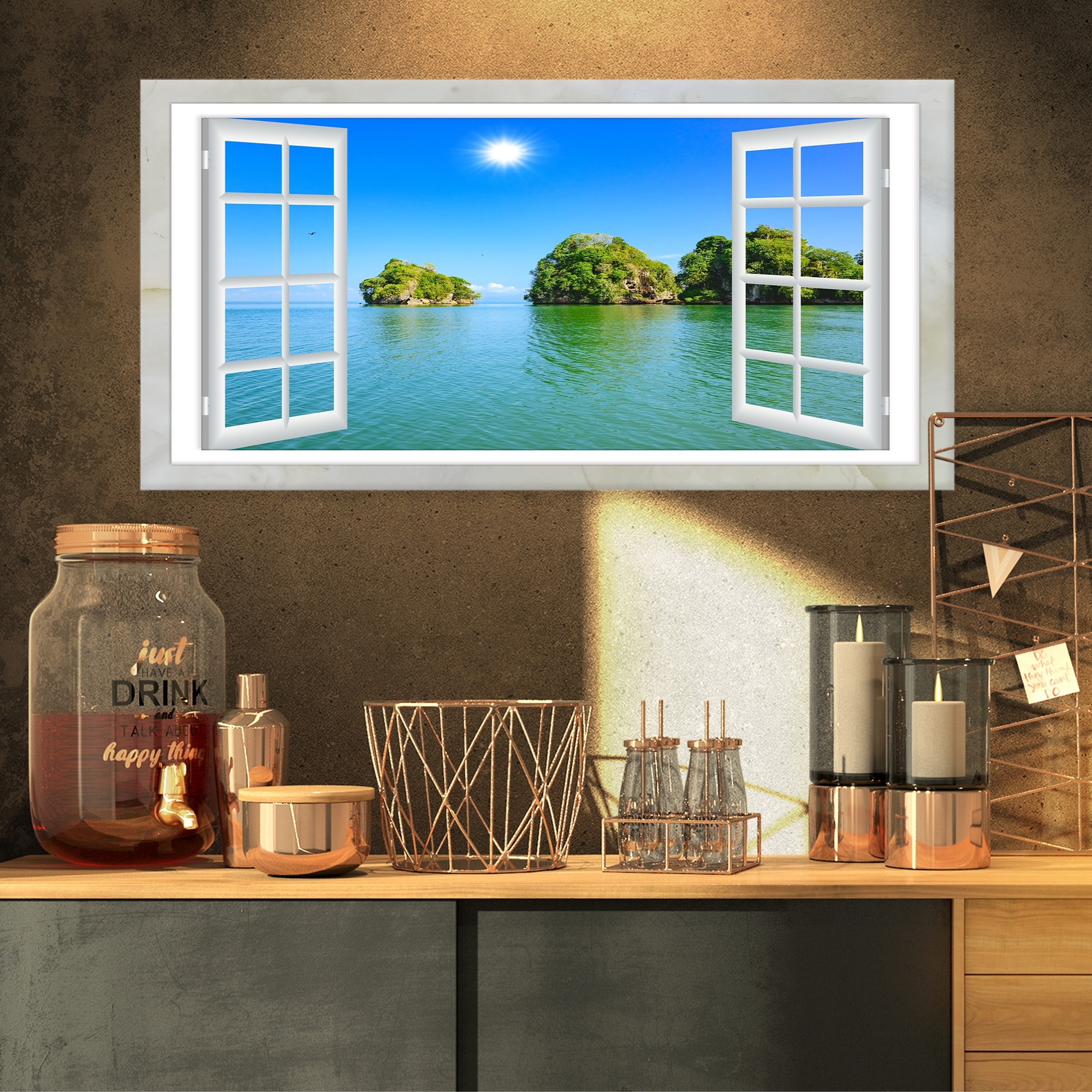 Open Window to Ocean Islets - Oversized Landscape Glossy Metal Wall Art