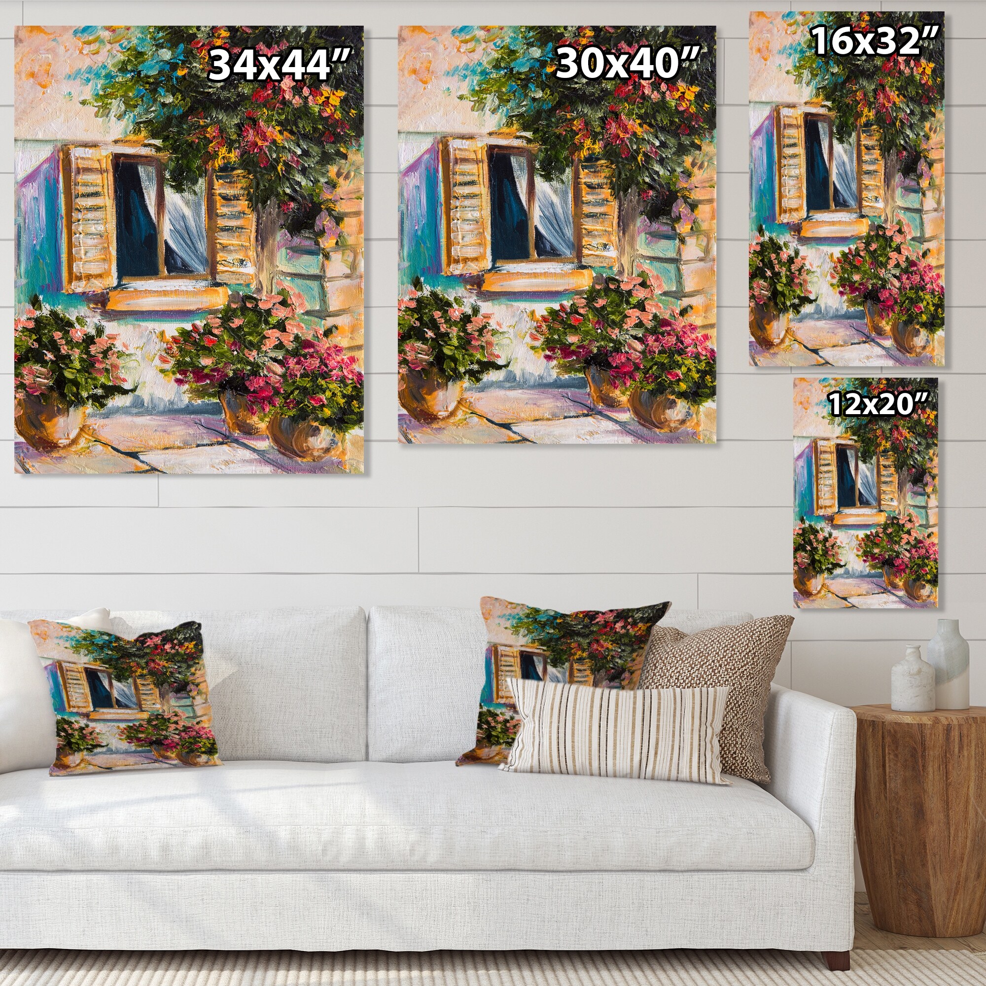 Designart "Open Window With Vibrant Flowers in Greek Street" Colonial Canvas Wall Art Print