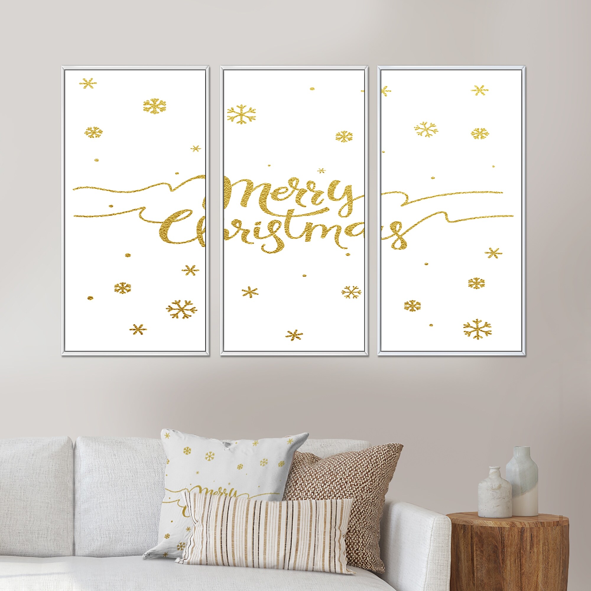 Designart "Merry Christmas Handwritten Wish on white and gold" Traditional Framed Artwork Set of 3 - 4 Colors of Frames