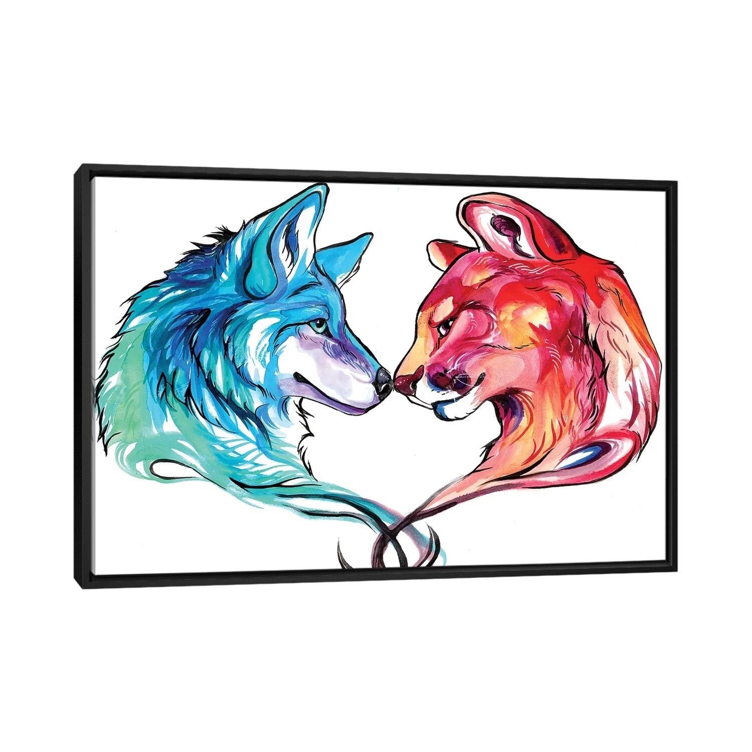 iCanvas "Mountain Lion and Wolf" by Katy Lipscomb Framed Canvas Print