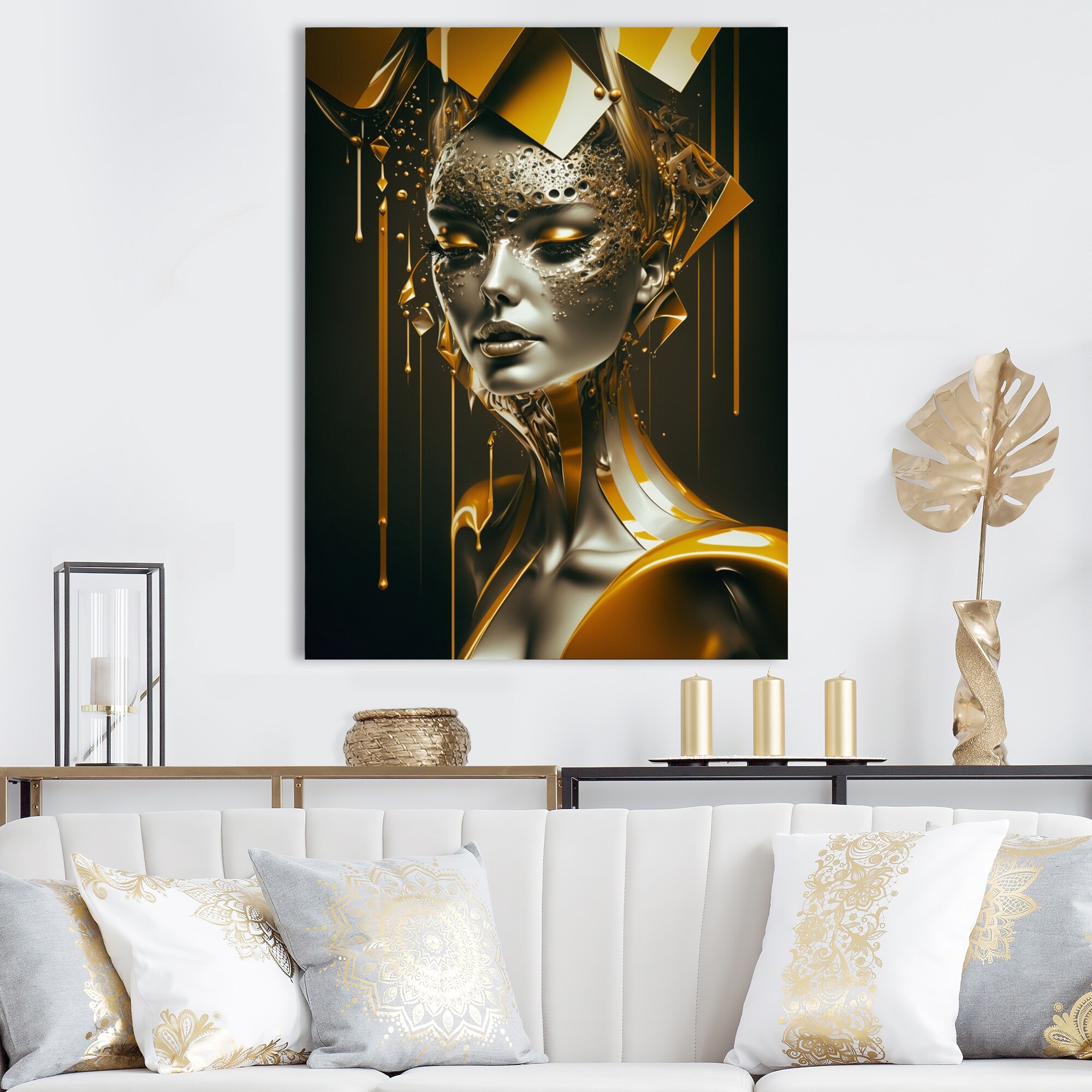 Designart "Gold Transcending Female Portrait Iv" Modern Woman Framed Canvas Art Print