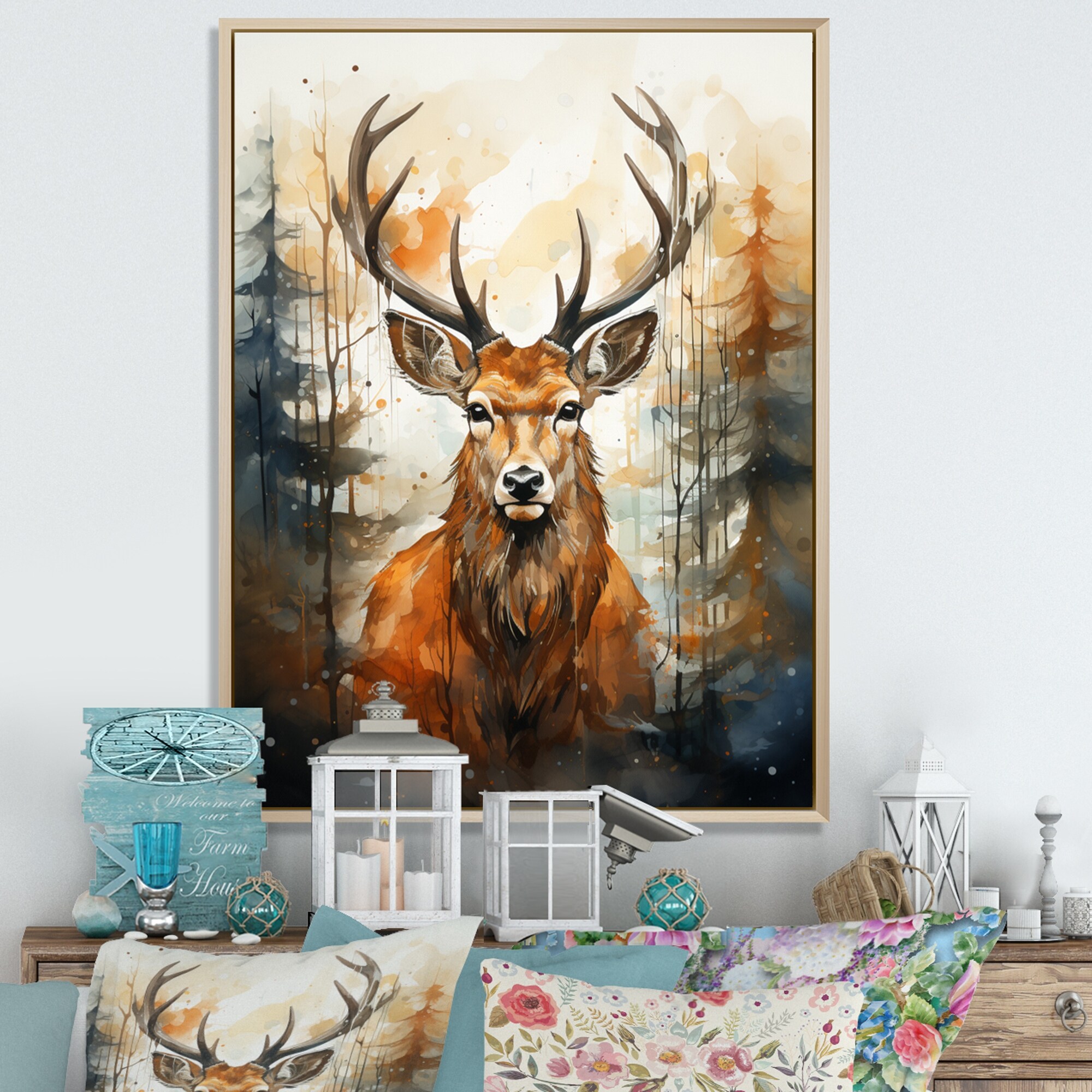 Designart "Deer Wonderers V" Animals Deer Framed Canvas Wall Art