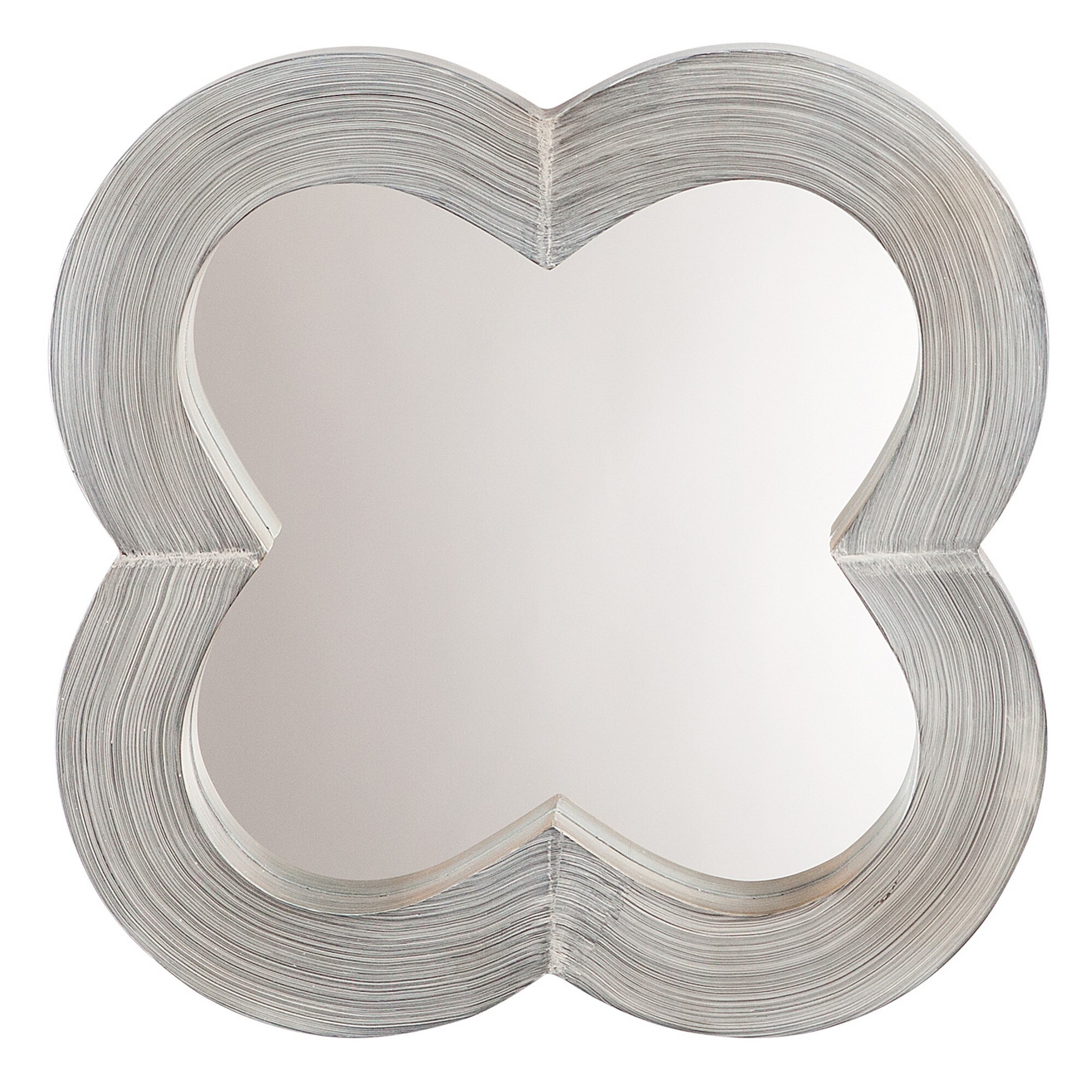Wall Mirror with Quatrefoil Shape Thick Wooden Frame, Gray
