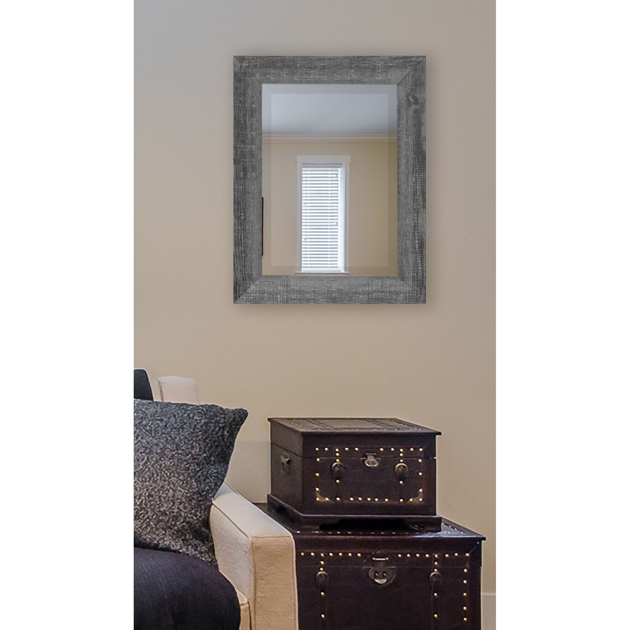 Modern Rustic Beveled Grey Wooden Wall Mirror
