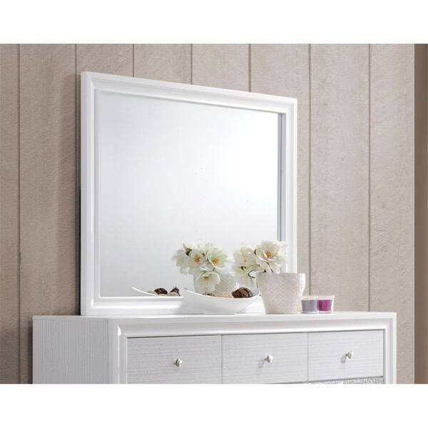 Transitional Style Rectangular Mirror with Wooden Frame, White