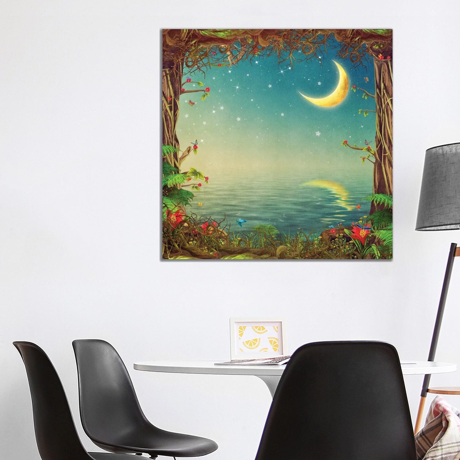 iCanvas "Beautiful Woodland Scene With Trees, Sky Snd Moon Over the Sea, Illustration Art" by natamc Canvas Print
