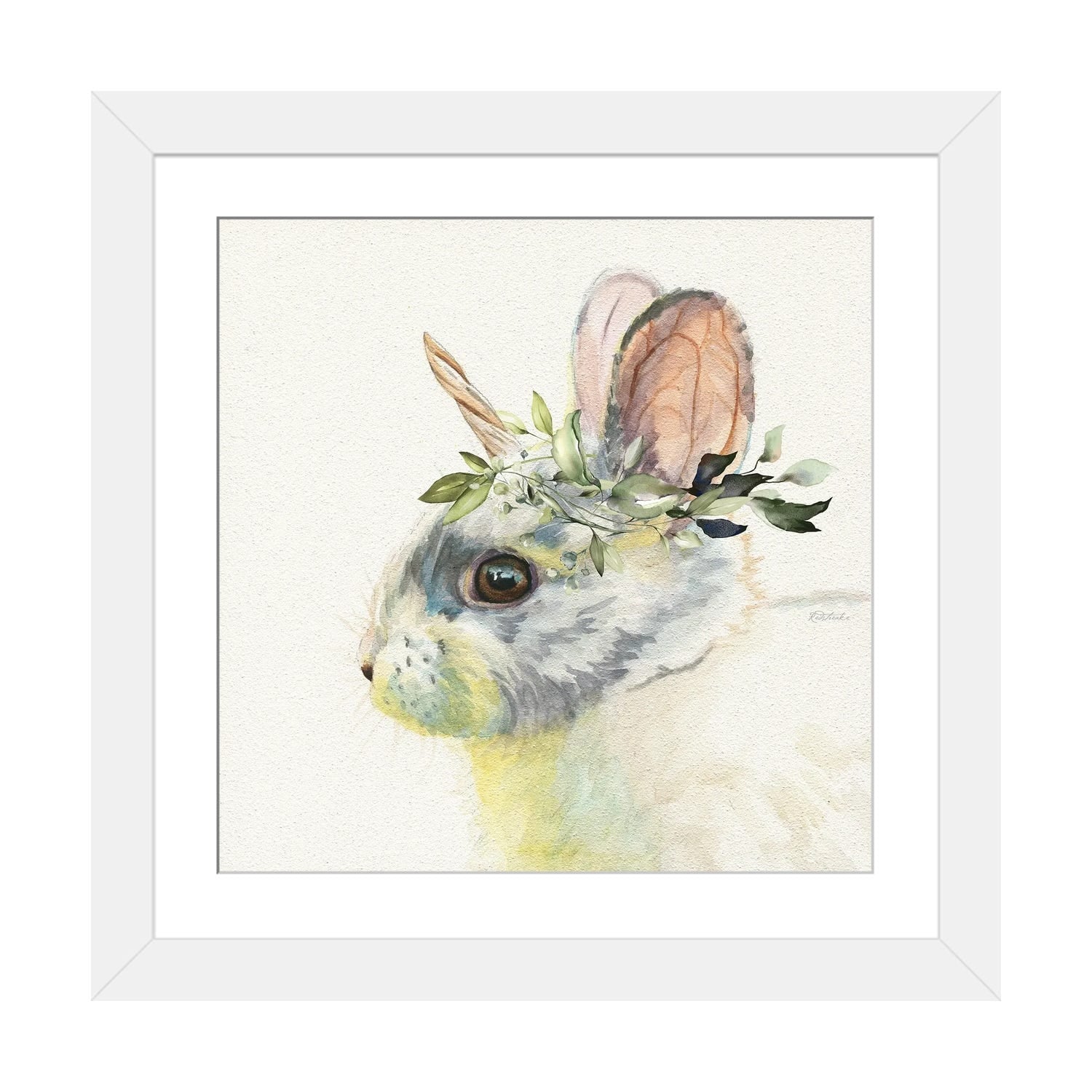 iCanvas "Woodland Bunny Linen" by Leah Straatsma Framed