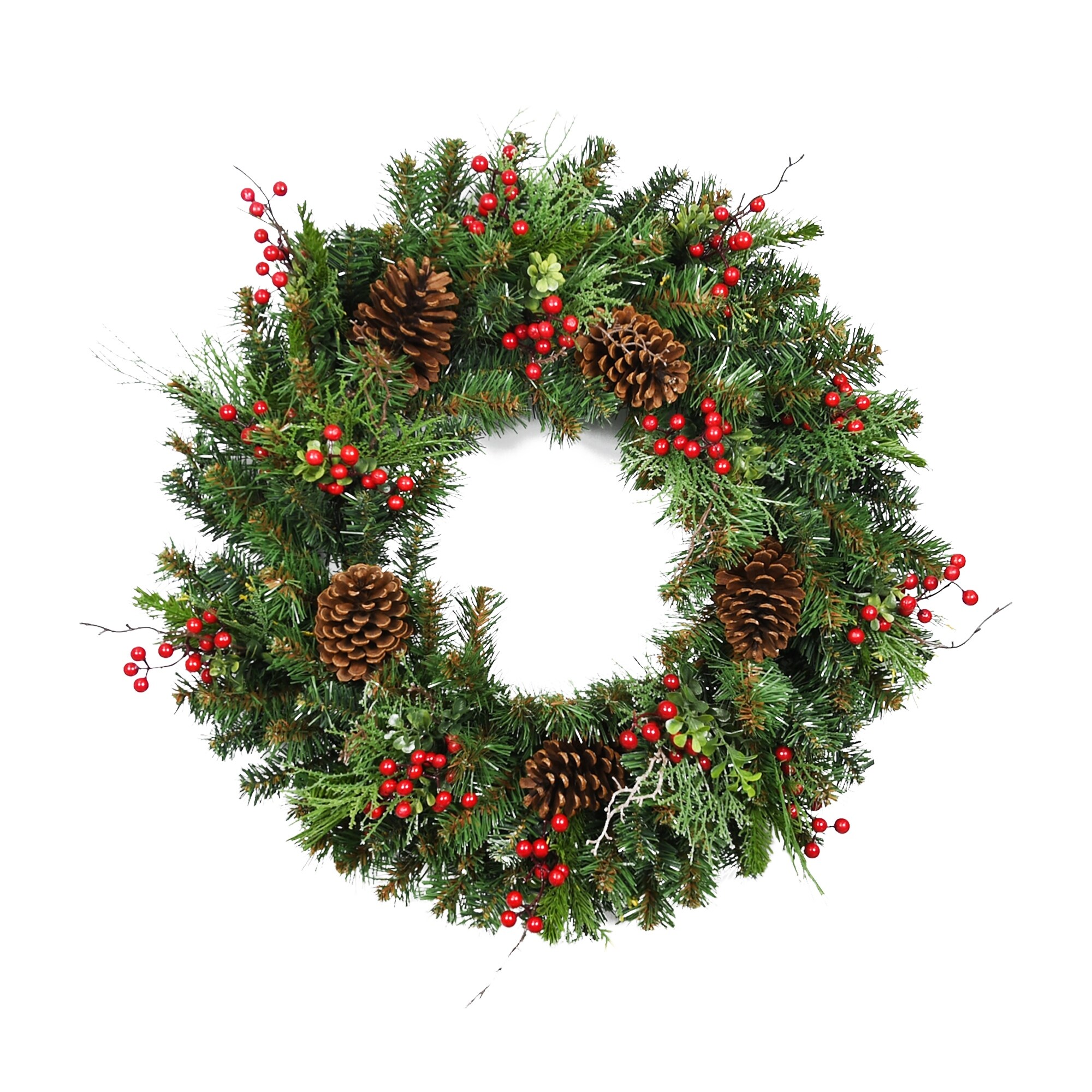 24" Christmas Mixed Pine and Berries Wreath - Green - 24 in