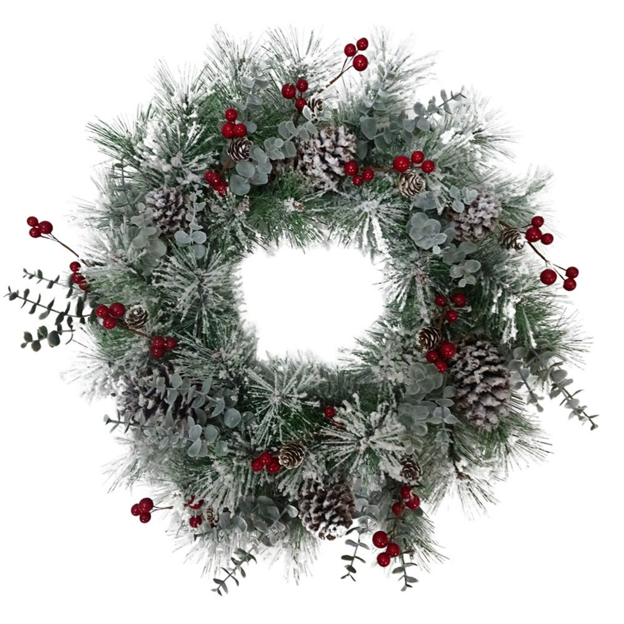 Frosted Pinecone and Berries Artificial Christmas Wreath, 24-Inch, Unlit - Green