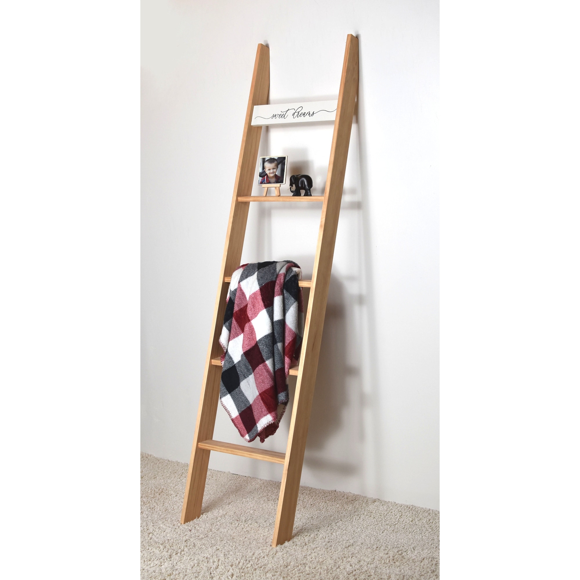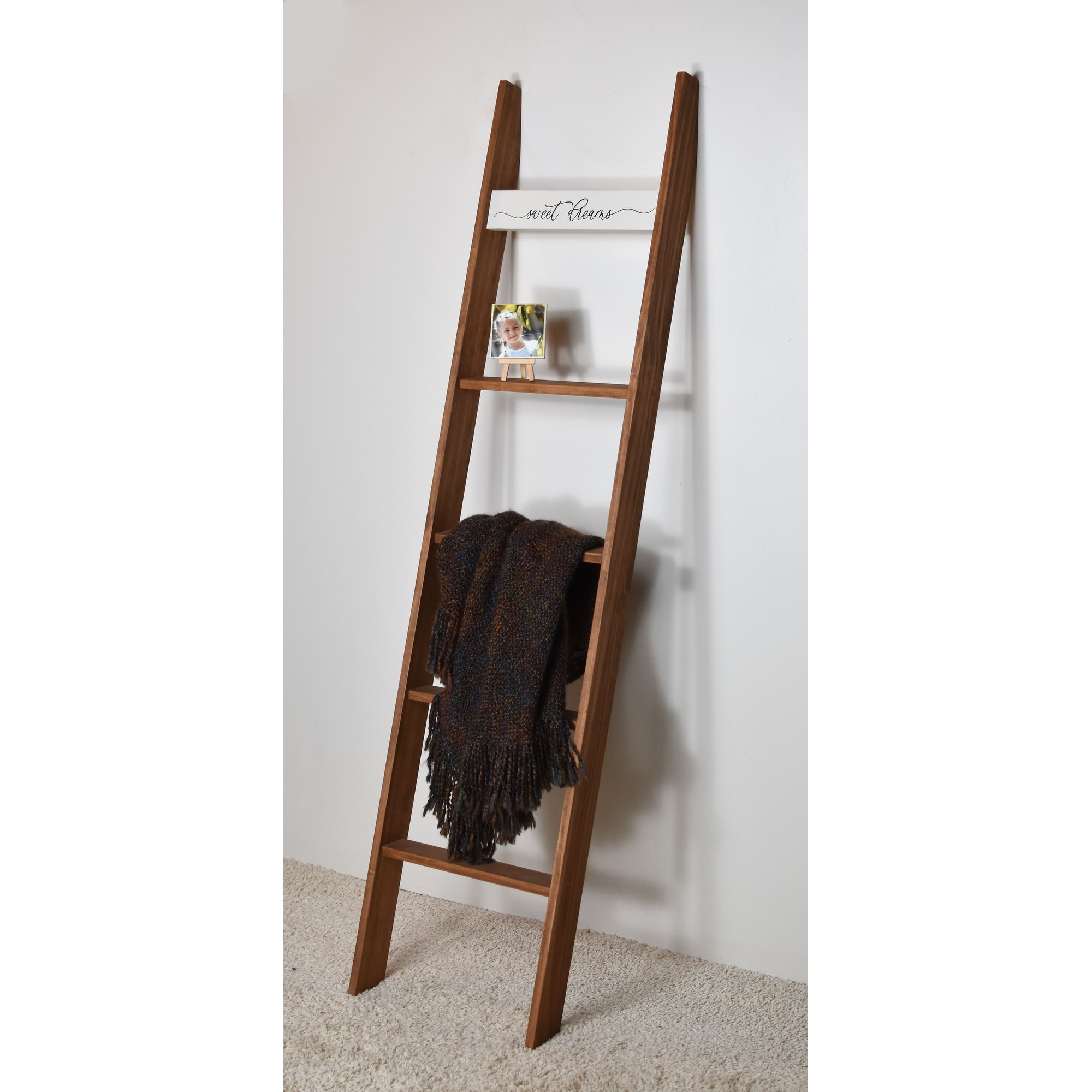 6ft Country Chic Decorative Blanket Ladder 'SWEET DREAMS' - Light Brown - 72 x 17 x 3