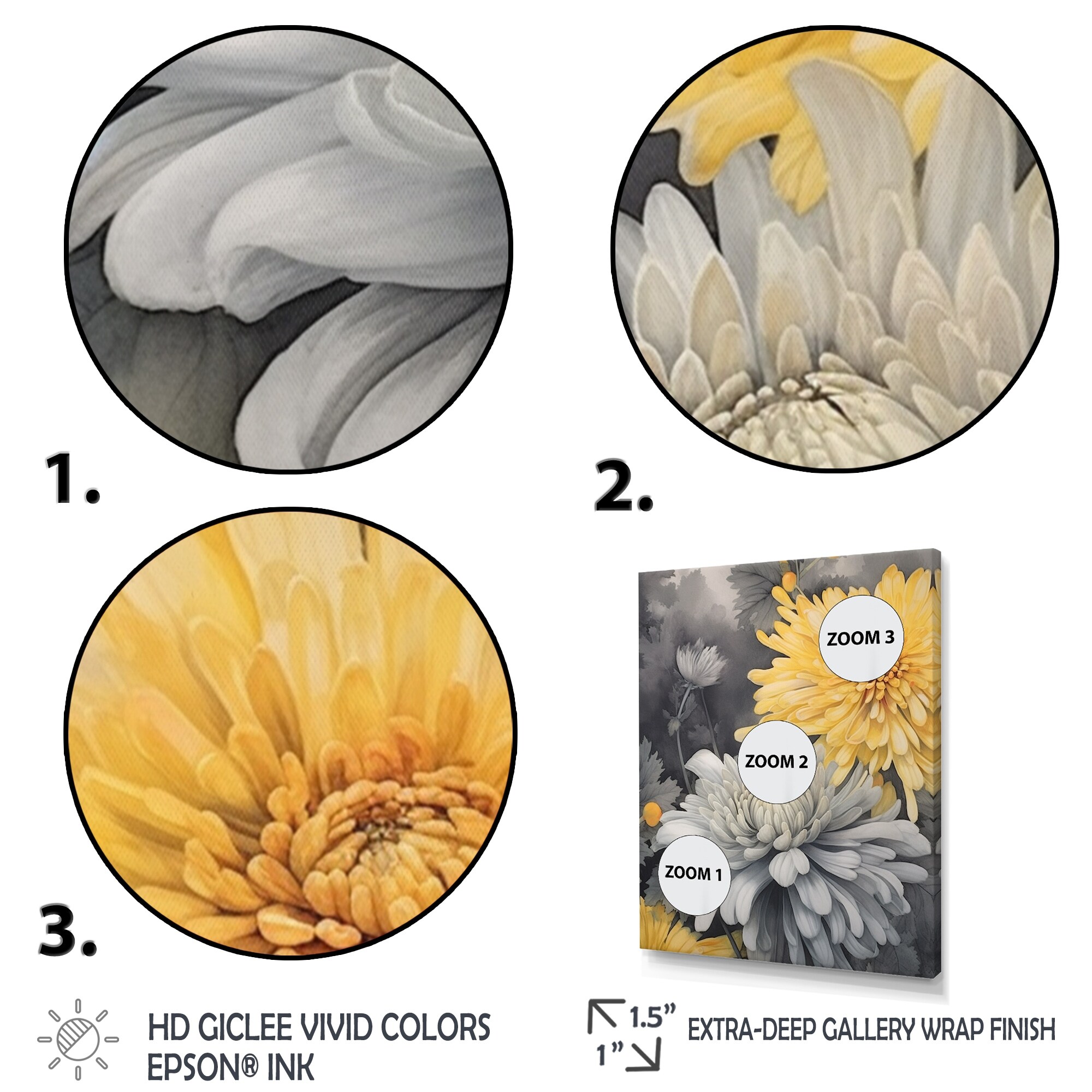 Designart "Yellow Grey Mums Spendor" Mums Framed Canvas Print