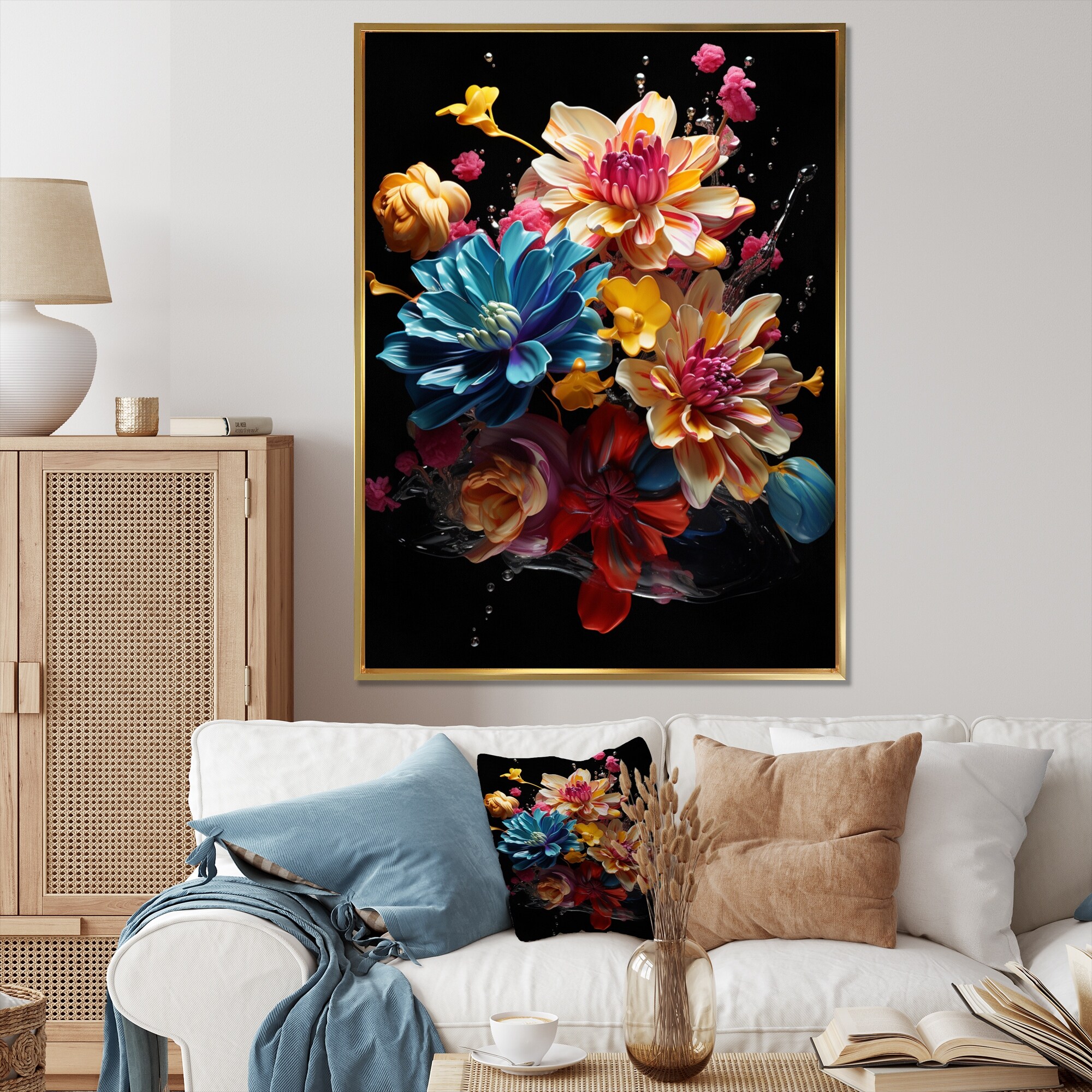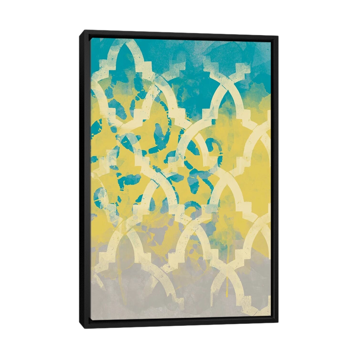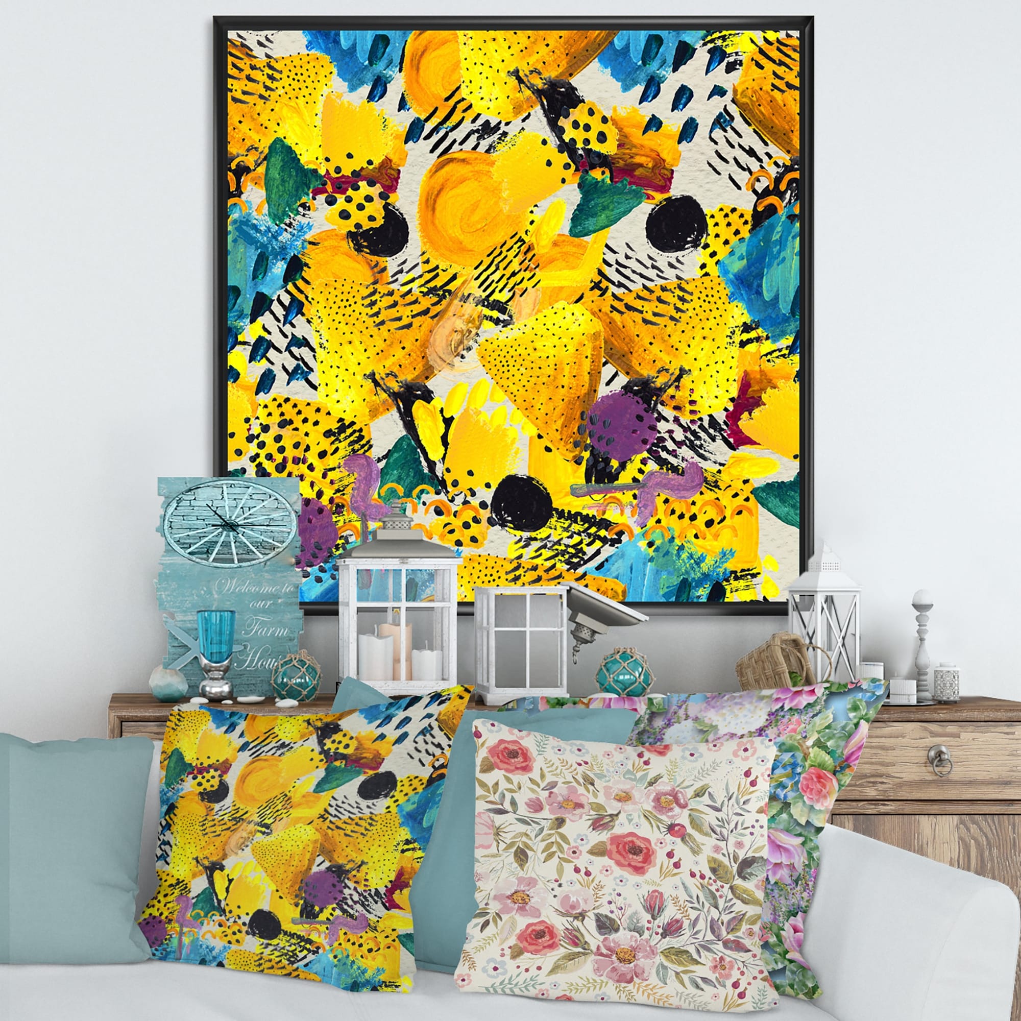 Designart "Yellow And Blue Colorful Impression" Patterned Framed Canvas Wall Art Print