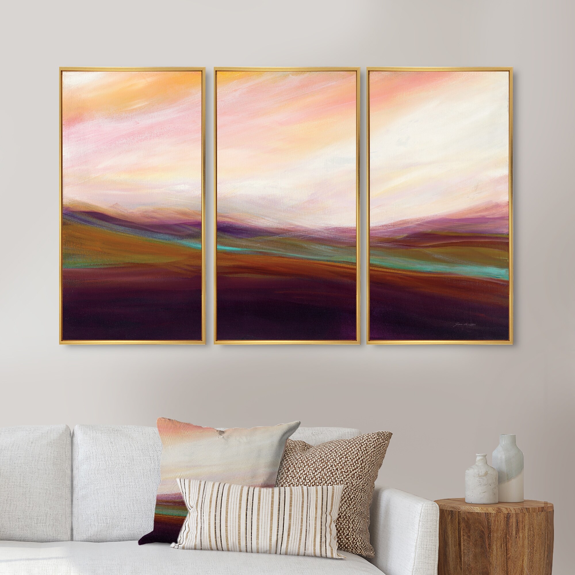 Designart "Abstract Desert Dunes Watercolor Orange Yellow" Farmhouse Framed Artwork Set of 3 - 4 Colors of Frames