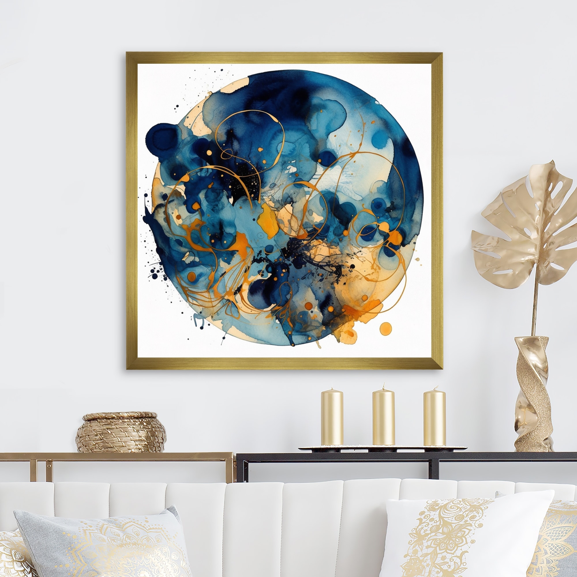 Designart "Blue And Yellow Liquid Depths Ii" Abstract Liquid Ink Framed Canvas Print