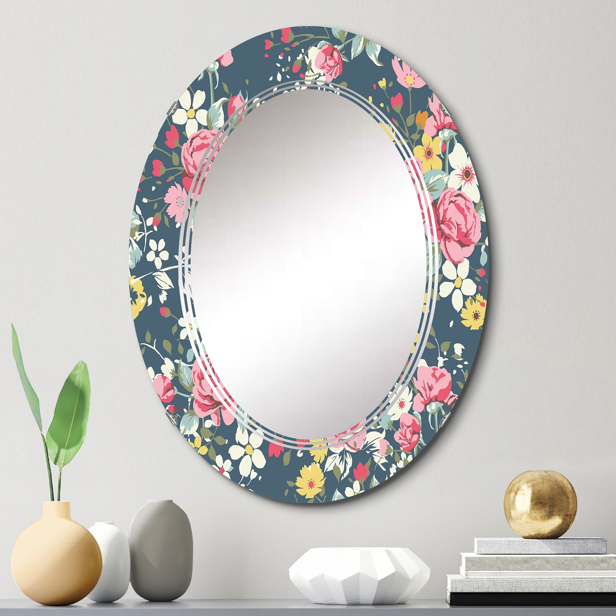 Designart 'Vintage Roses And Yellow on Navy' Printed Vintage Wall Mirror