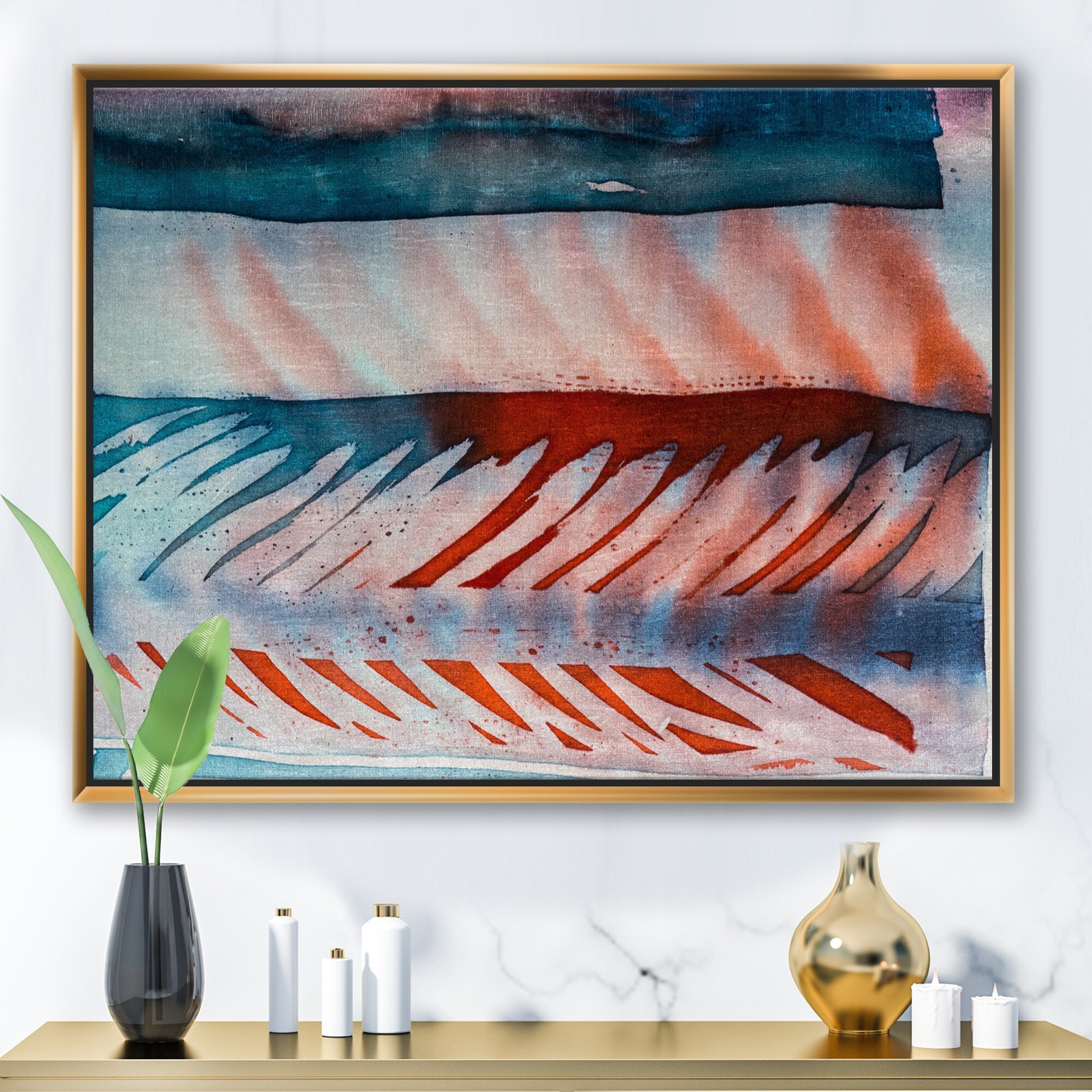 Designart "Blue And Red Batik Impression" Modern Framed Canvas Wall Art Print