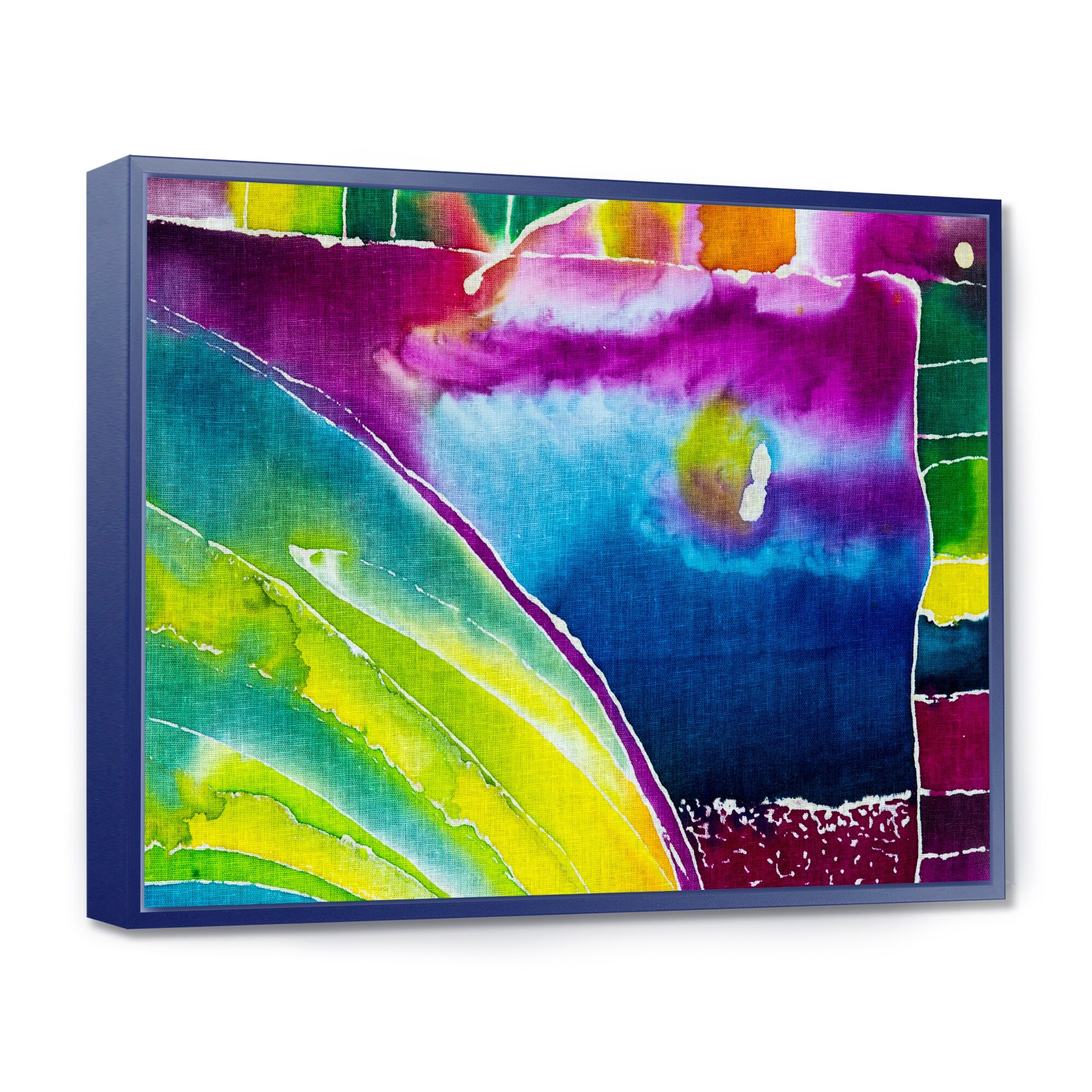 Designart "Blue Purple And Green Batik Impression" Modern Framed Canvas Wall Art Print