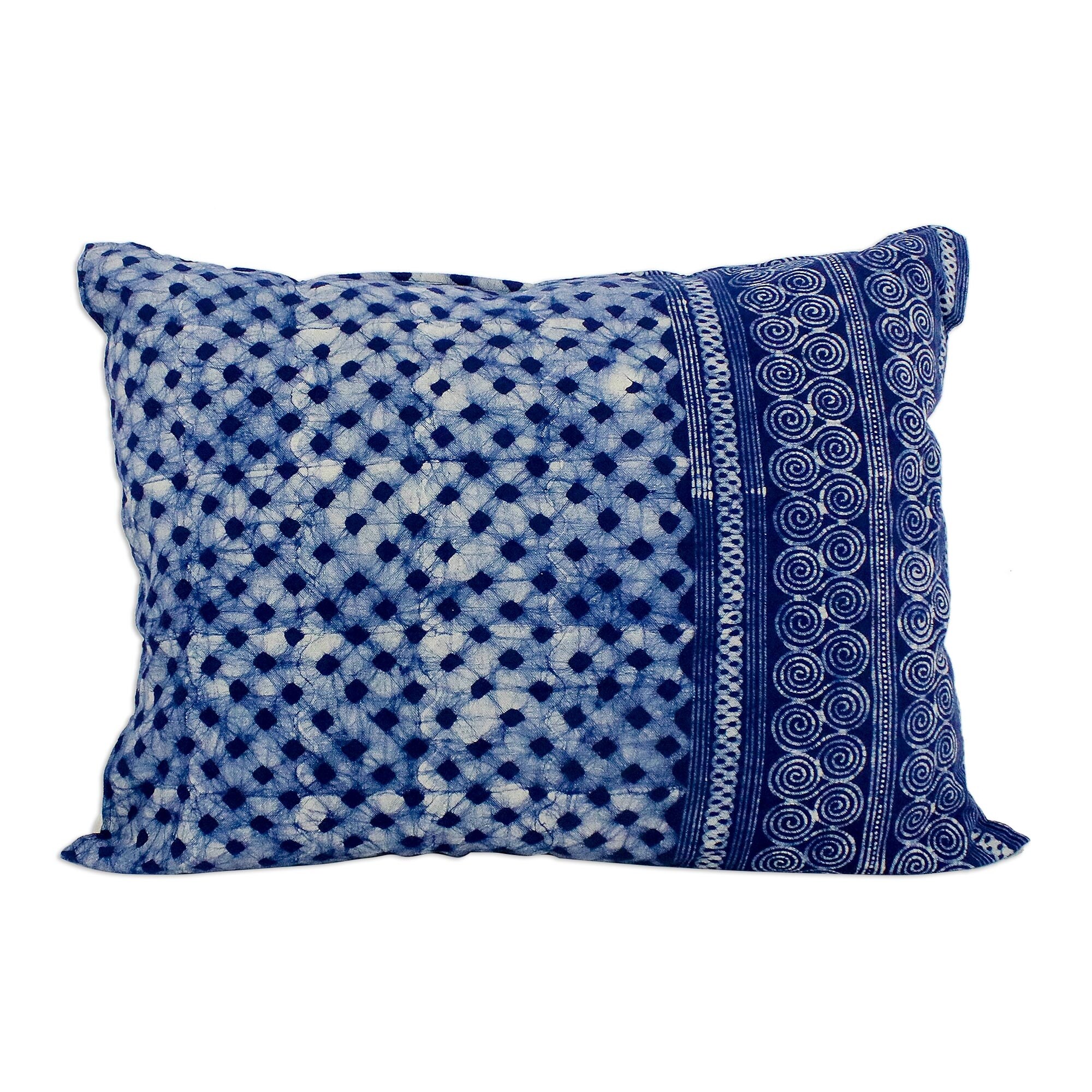 Novica Handmade Modern Indigo Cotton Batik Cushion Cover