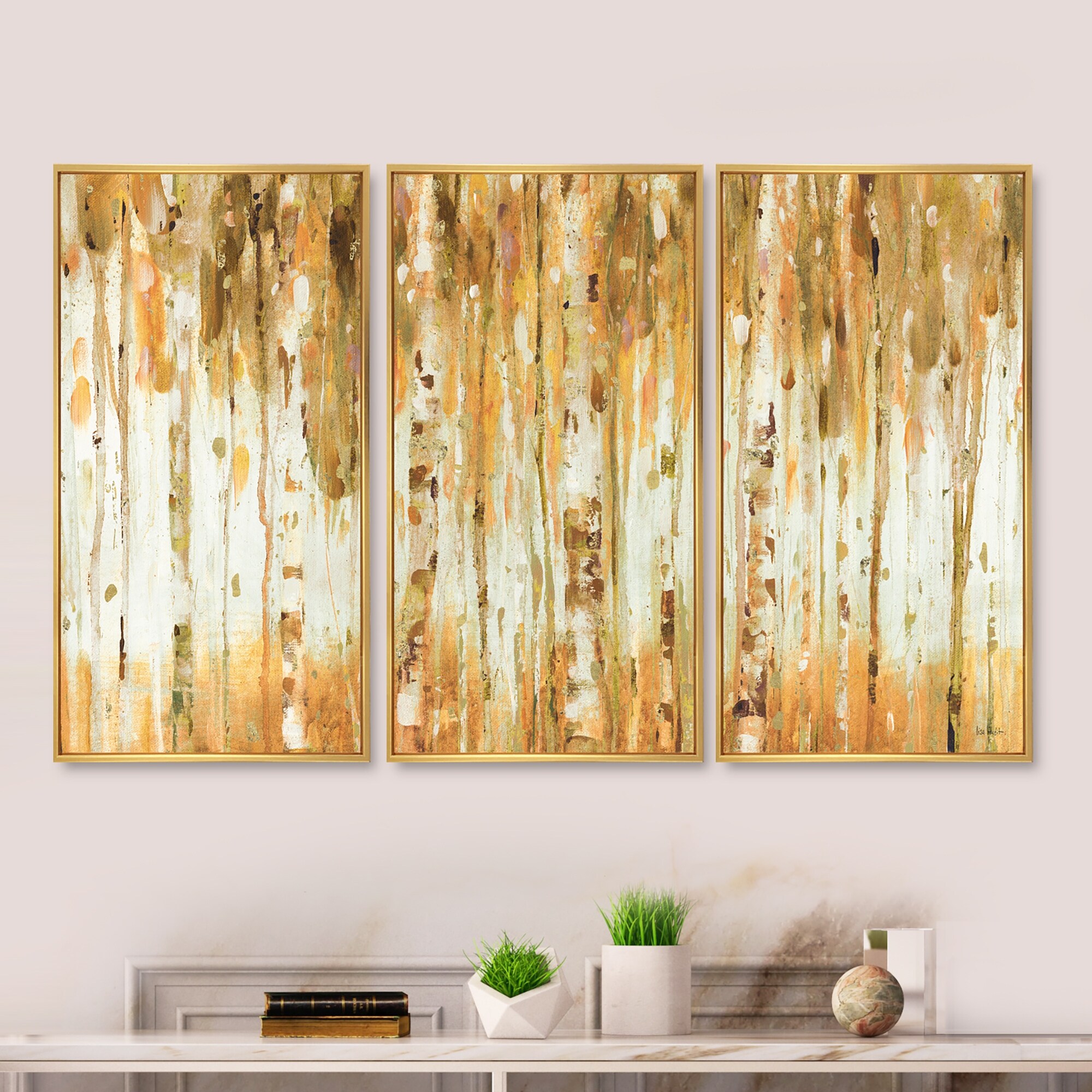 Designart "The Forest I Fall Crop" Modern & Contemporary Framed Art Set of 3 - 4 Colors of Frames