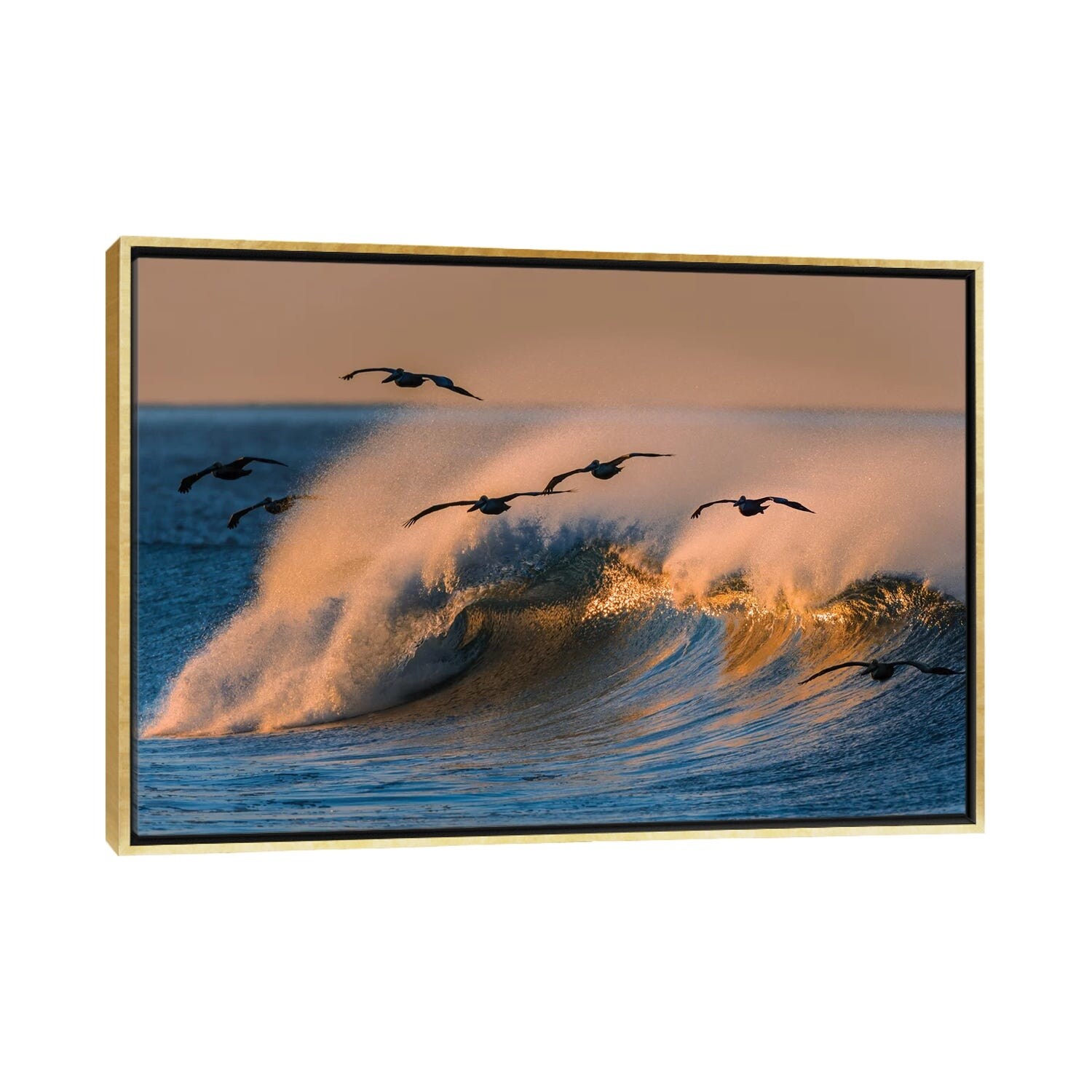 iCanvas "Pelican Flock and Wave" by David Orias Framed Canvas Print