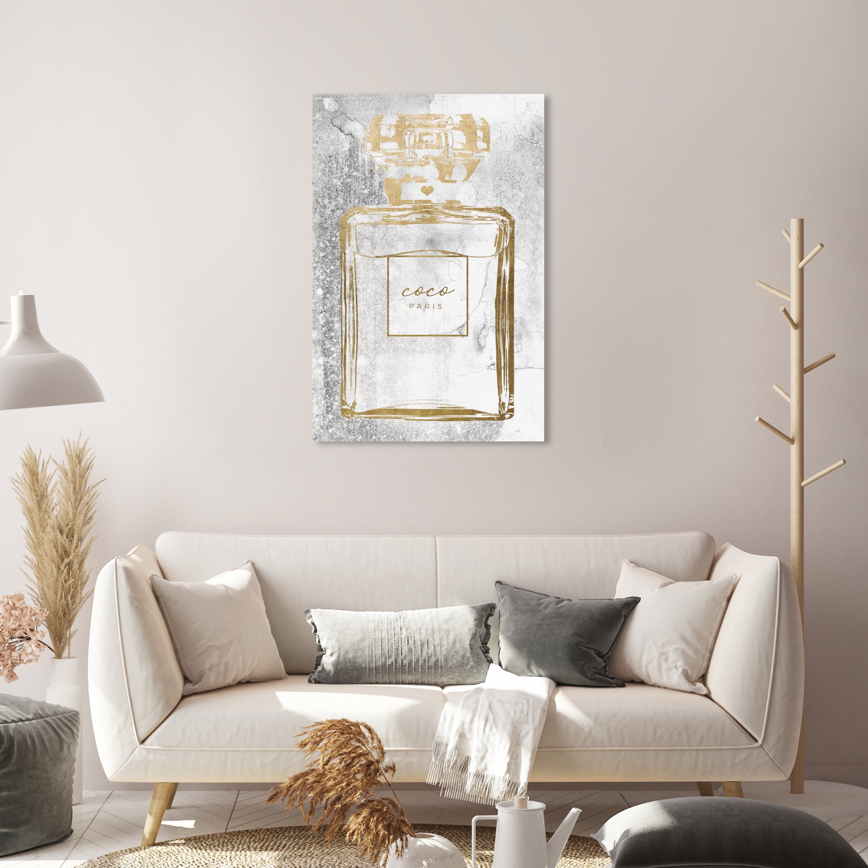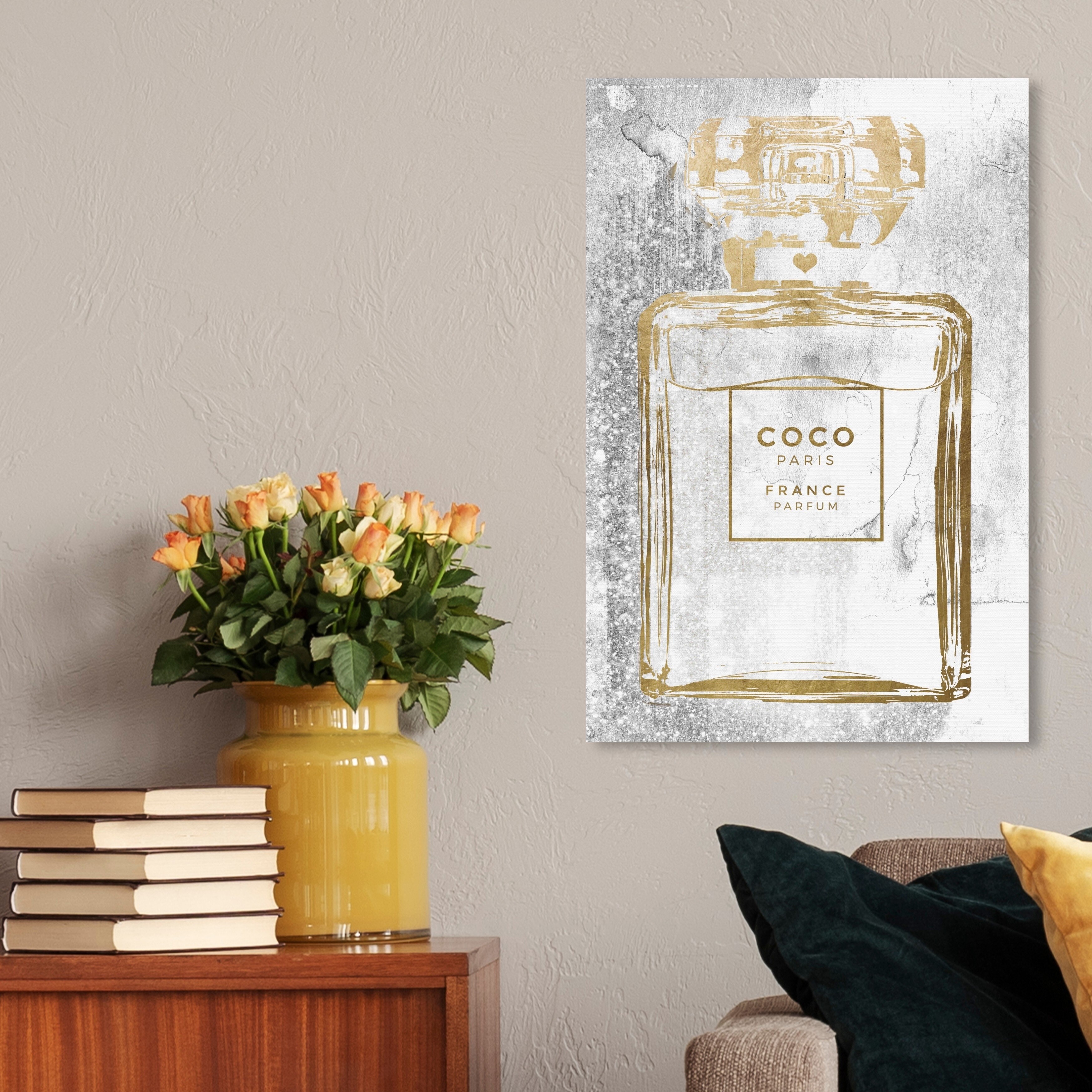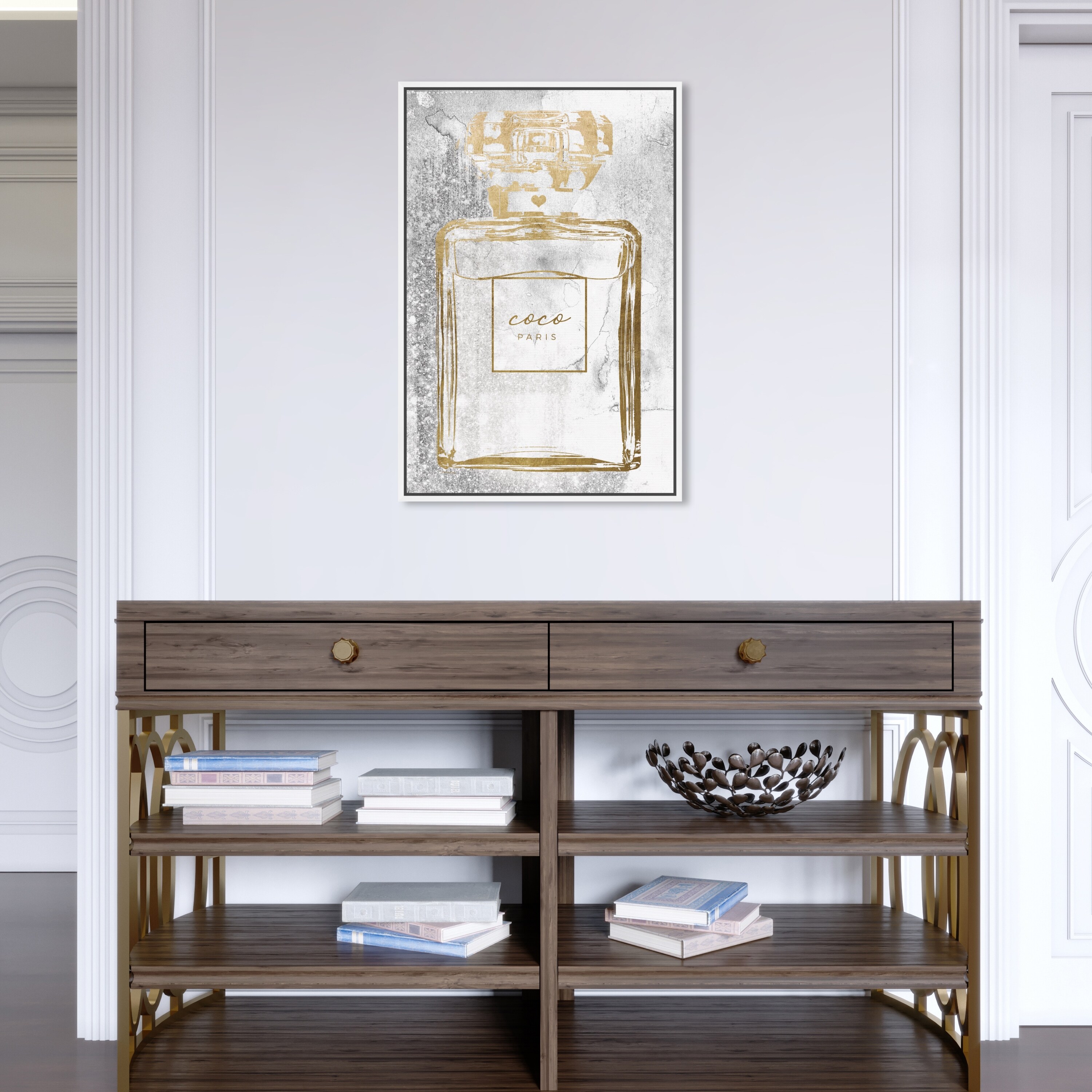 Oliver Gal 'Infinite Glam Light Gray' Fashion and Glam Wall Art Framed Canvas Print Perfumes - Gray, Gold