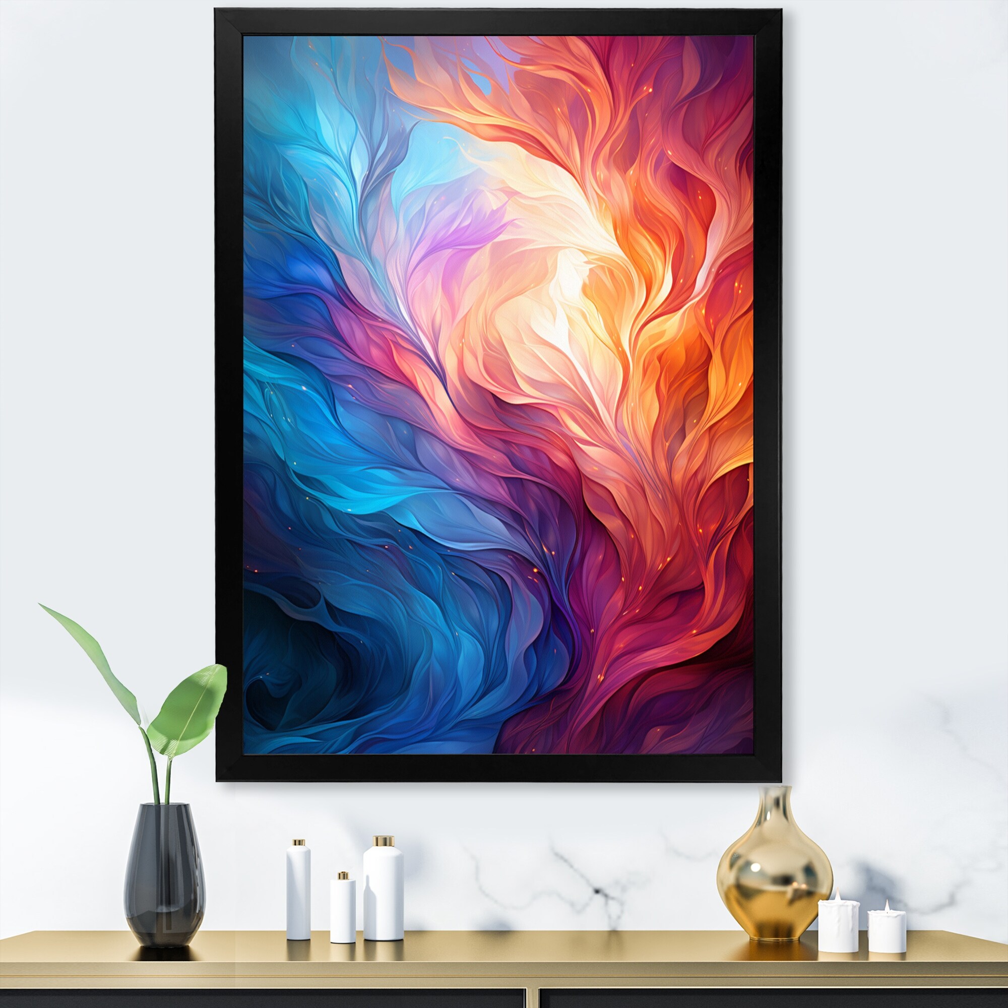 Designart "Yellow Orange Abstract Fractal Infinite Symphony" Fractals Framed Canvas Wall Art