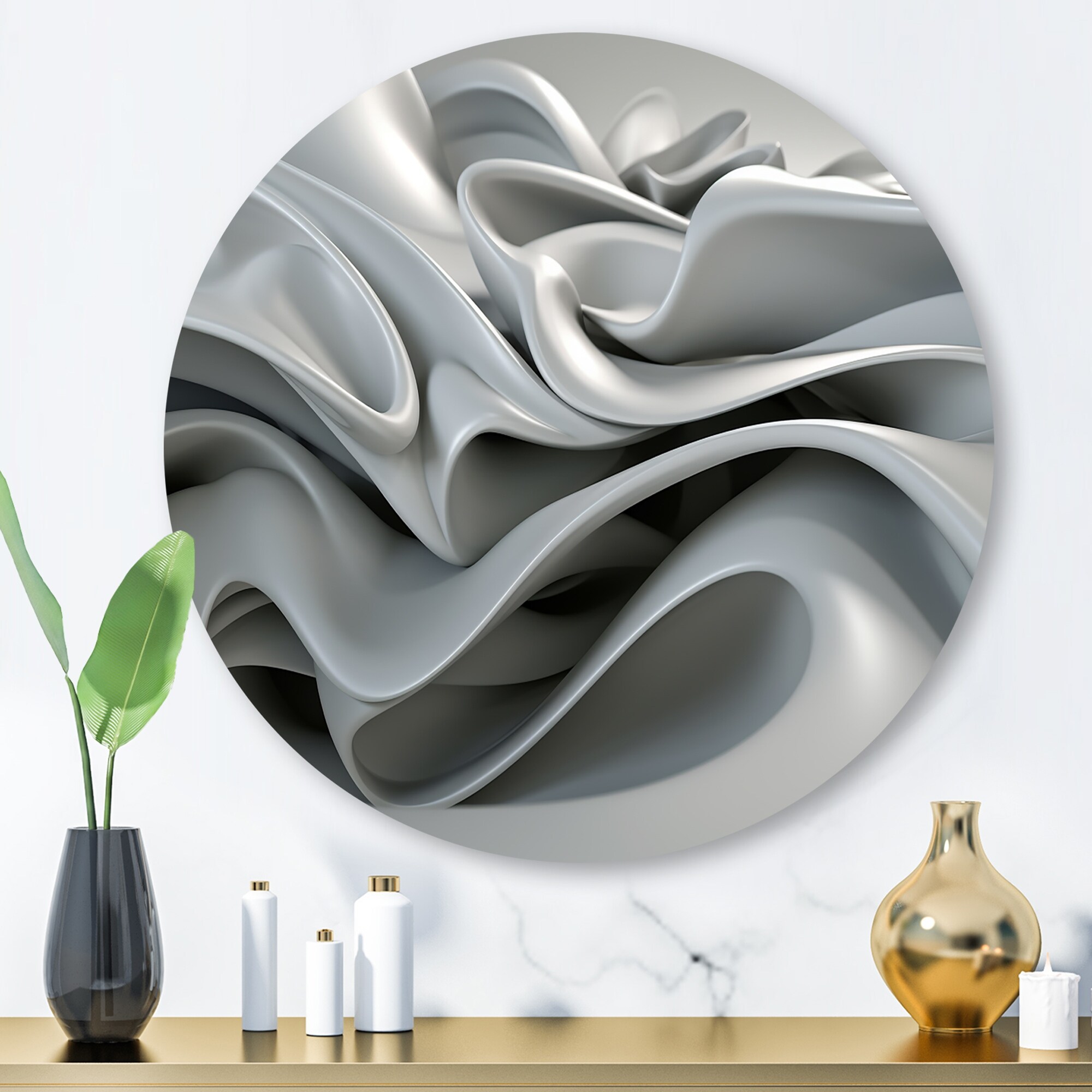 Designart "Grey Infinite Ripples" Modern Waves Metal Round Wall Art