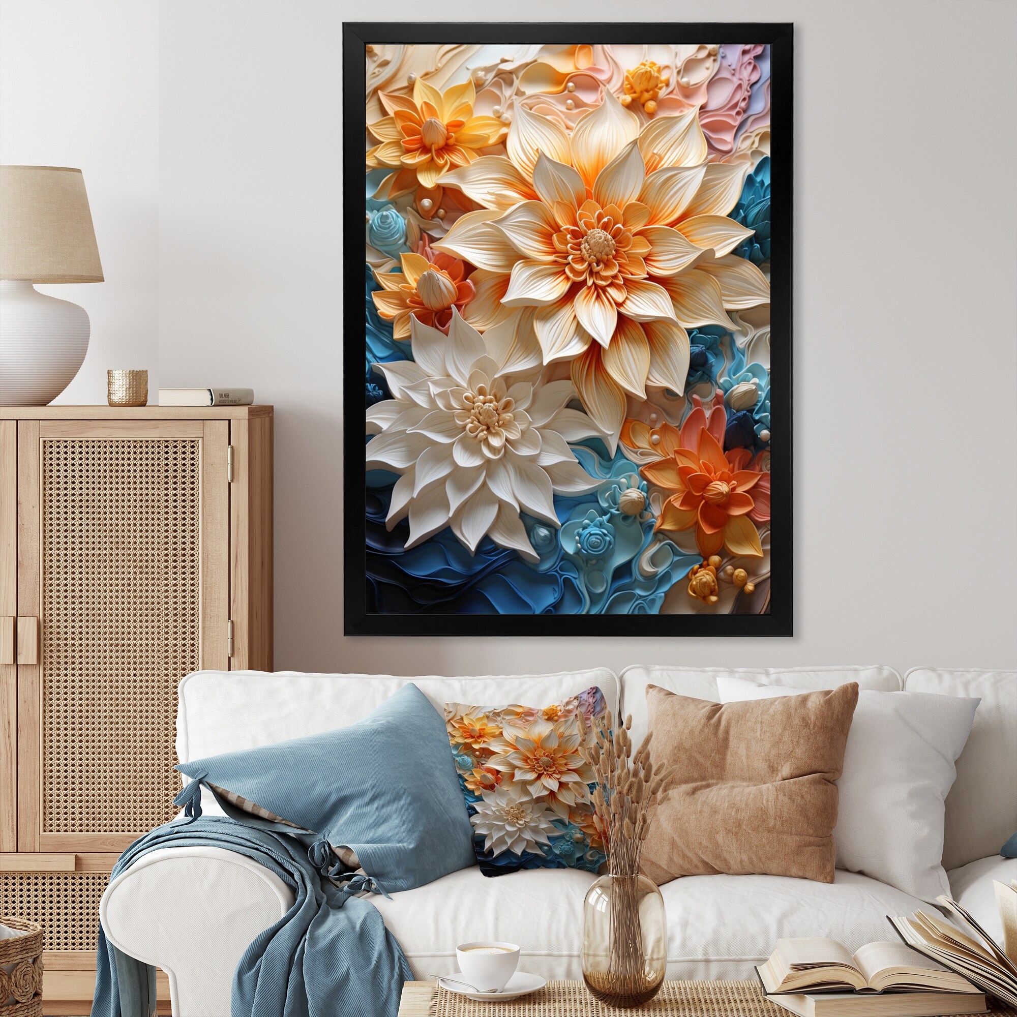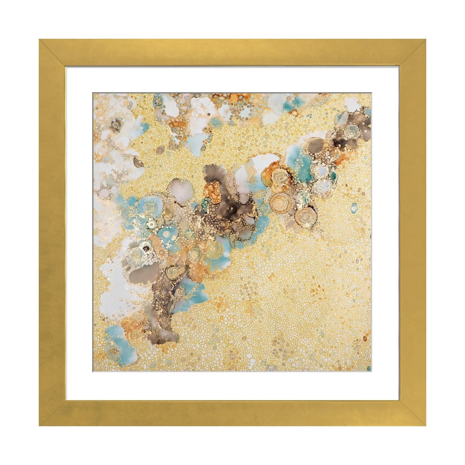 Designart "Blue And Gold Melodies of Infinite Order I" Abstract Fractal Framed Canvas Wall Art