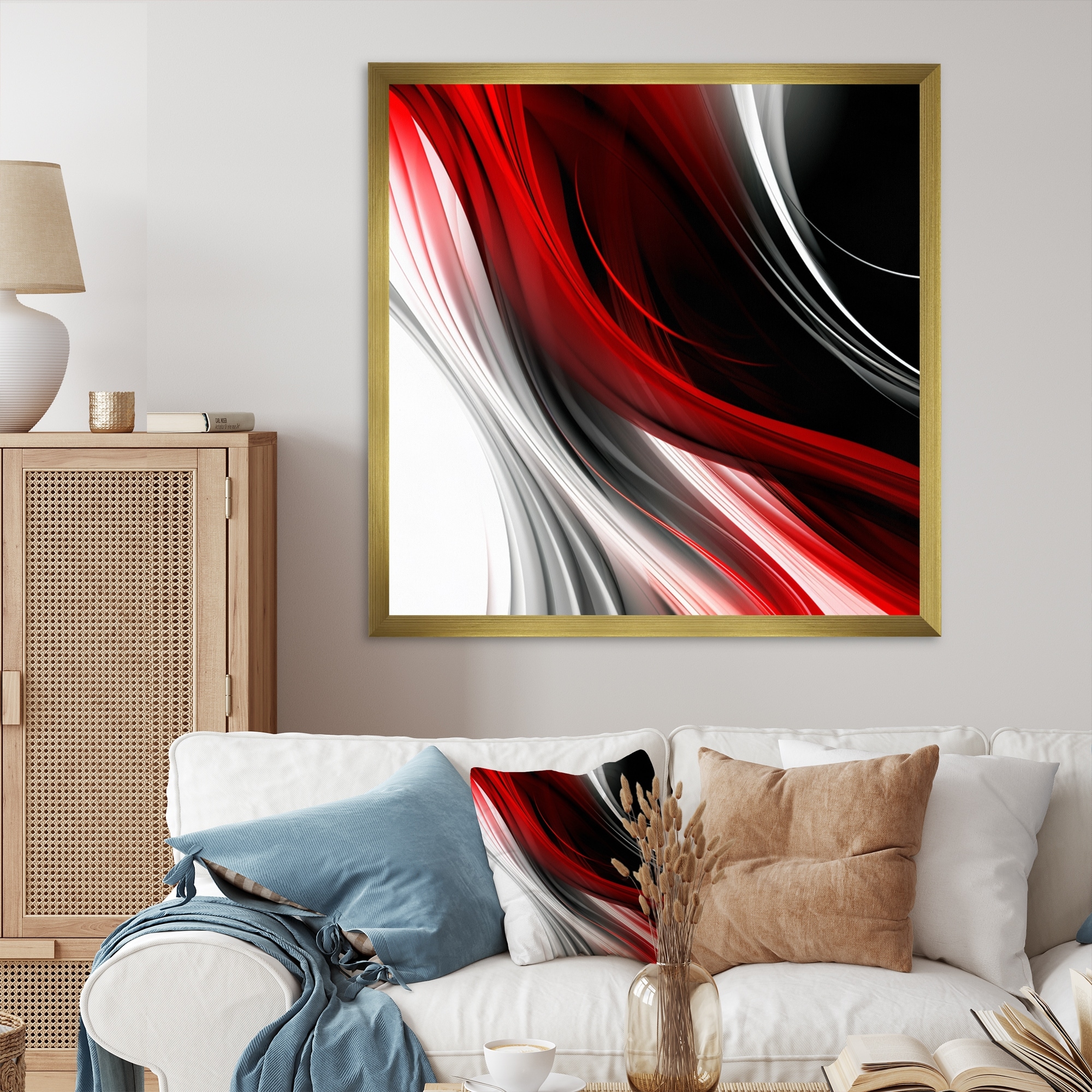 Designart "Red Black Infinite Ripples I" Modern Waves Framed Canvas Art Print