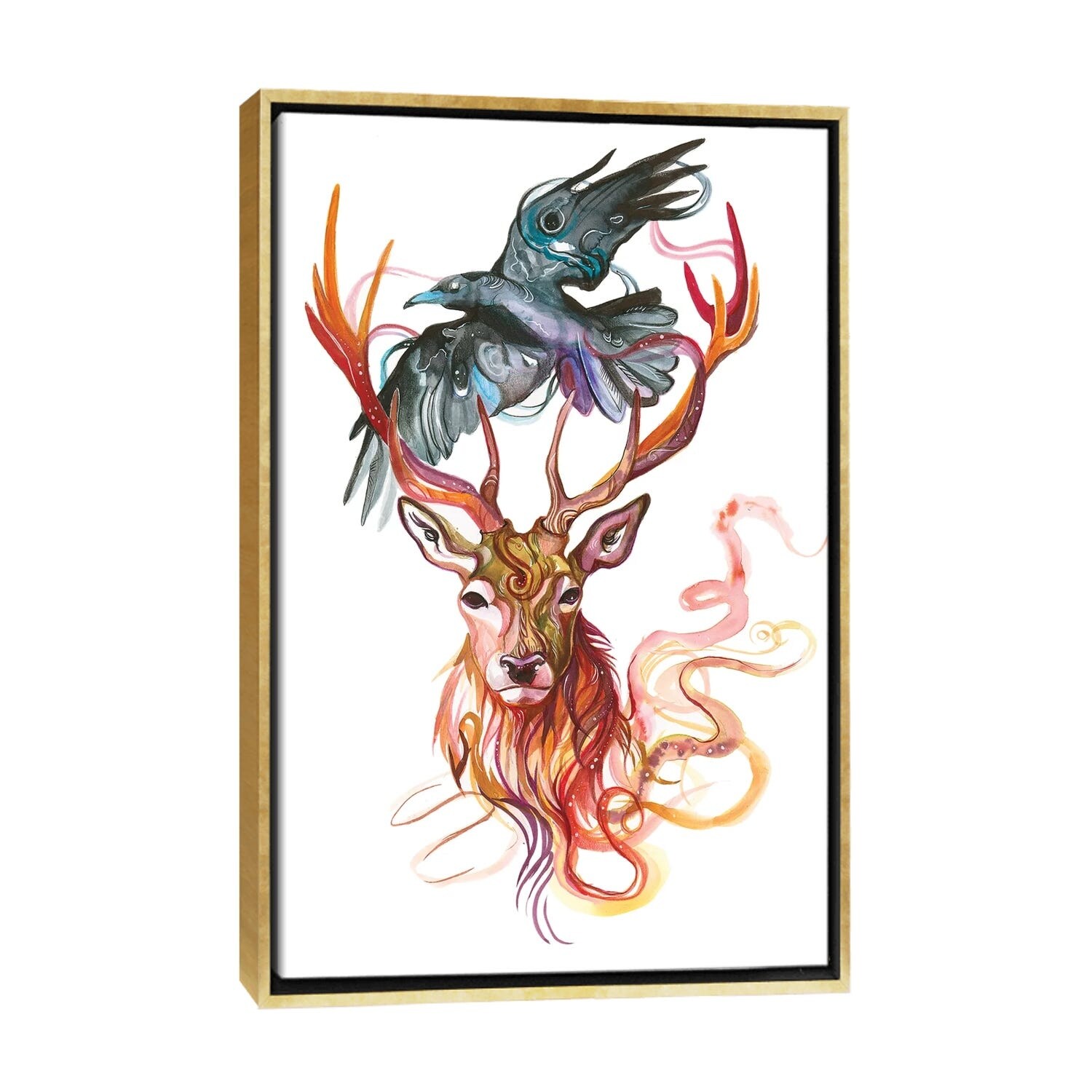 iCanvas "Stag and Crow" by Katy Lipscomb Framed Canvas Print