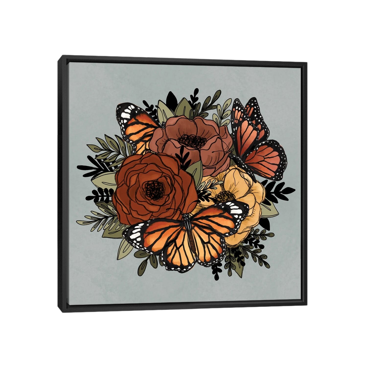 iCanvas "Orange Butterfly Florals" by Katie Bryant Framed Canvas Print