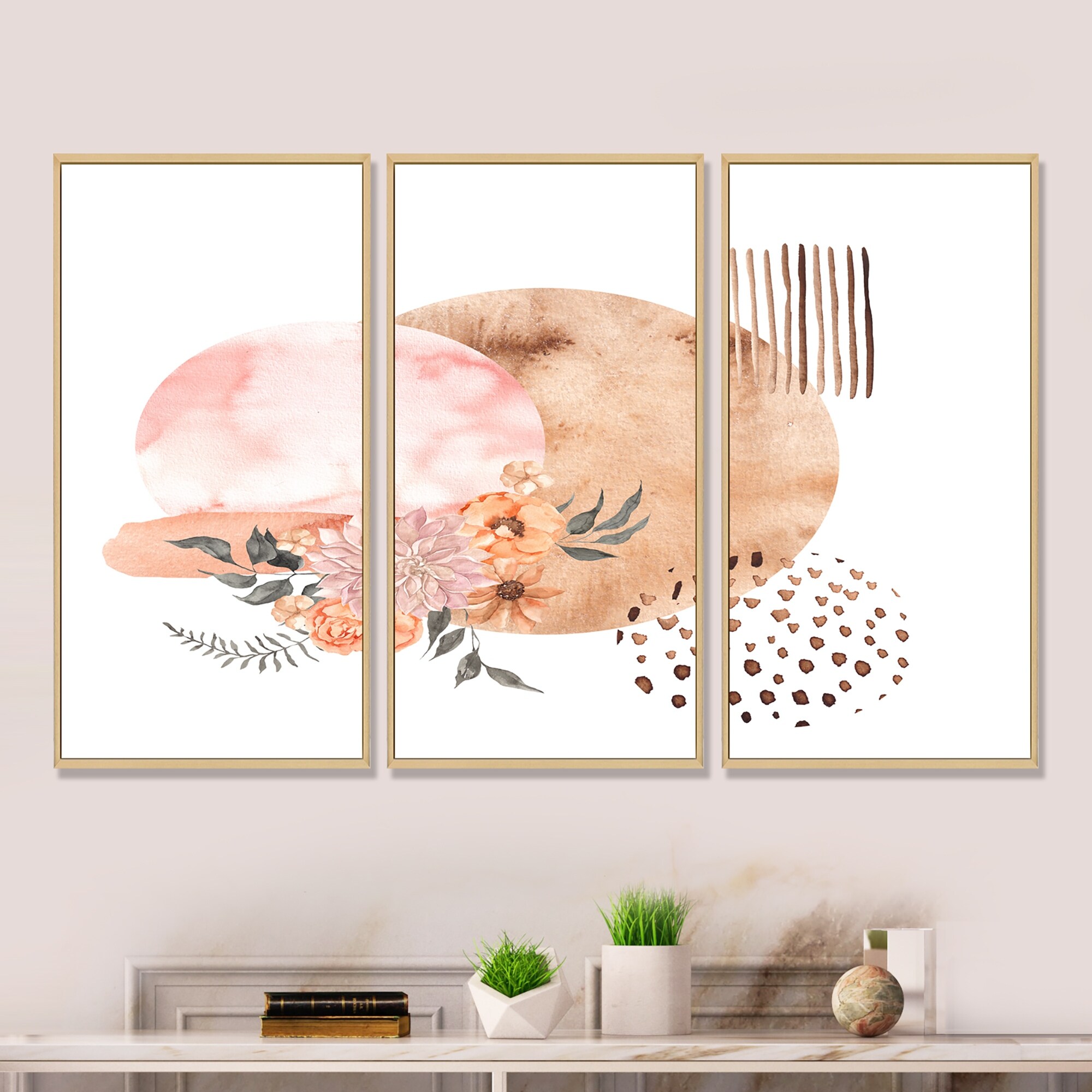 Designart "Abstract Geometric Shapes in Earth Tones II" Modern Framed Wall Art Set of 3 - 4 Colors of Frames