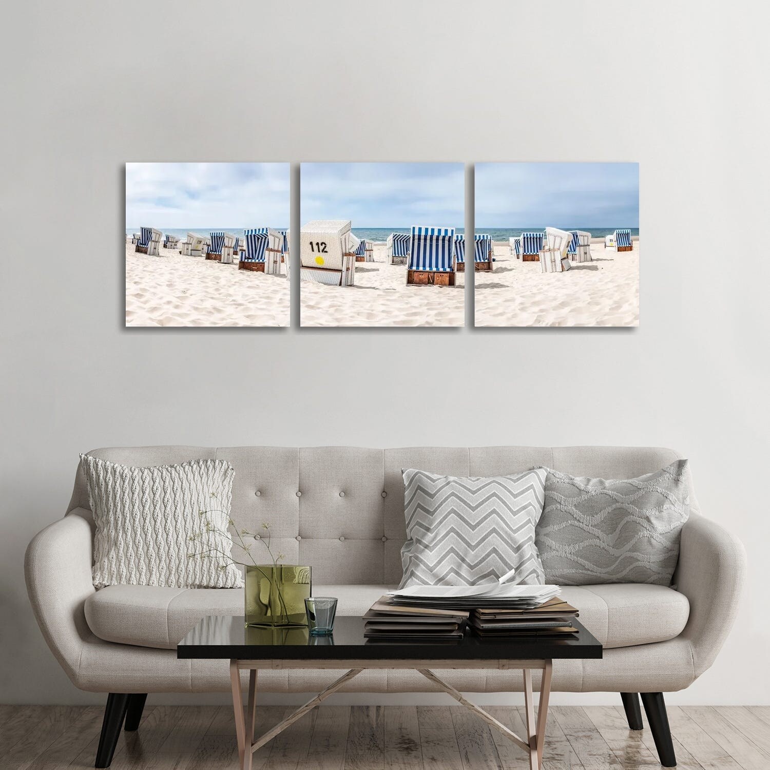 iCanvas "Traditional Roofed Wicker Beach Chairs At the North Sea Coast" by Jan Becke 3-Piece Canvas Wall Art Set