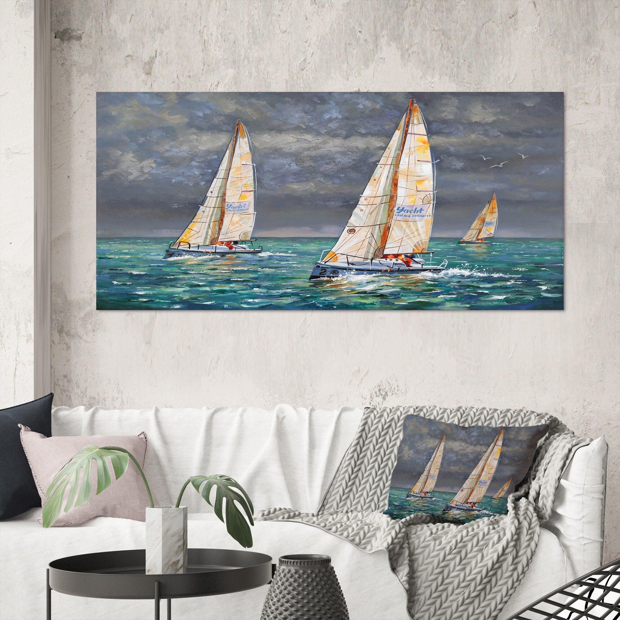 Designart "Regatta Sailboats Arriving At the Finish I" Nautical & Coastal Canvas Wall Art Print