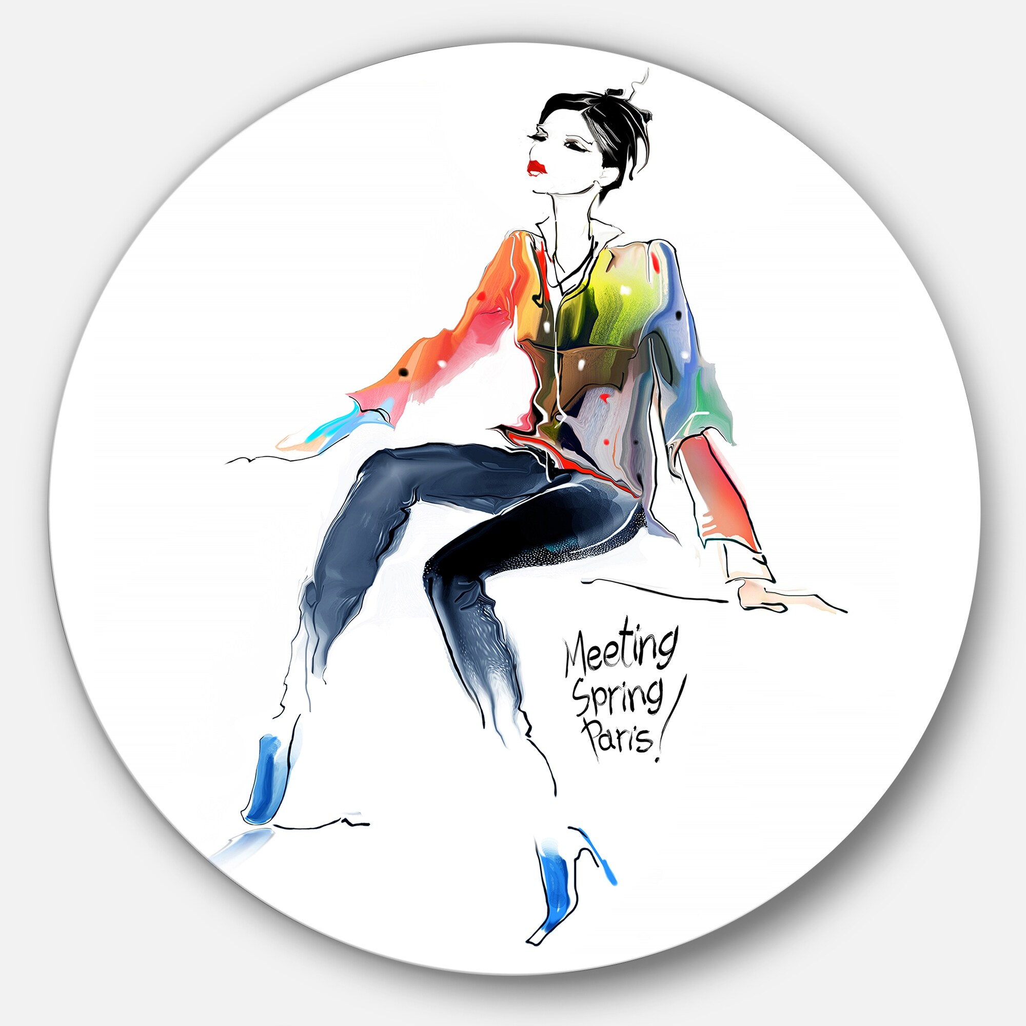 Designart 'Young Woman Colorful' Portrait Digital Art Round Metal Wall Art