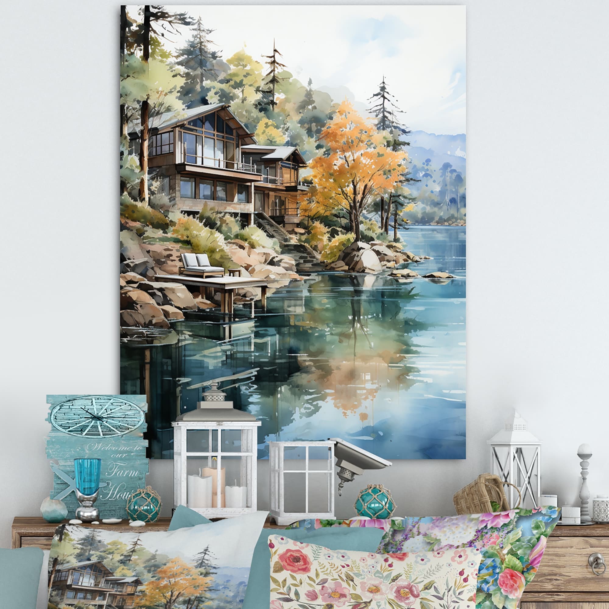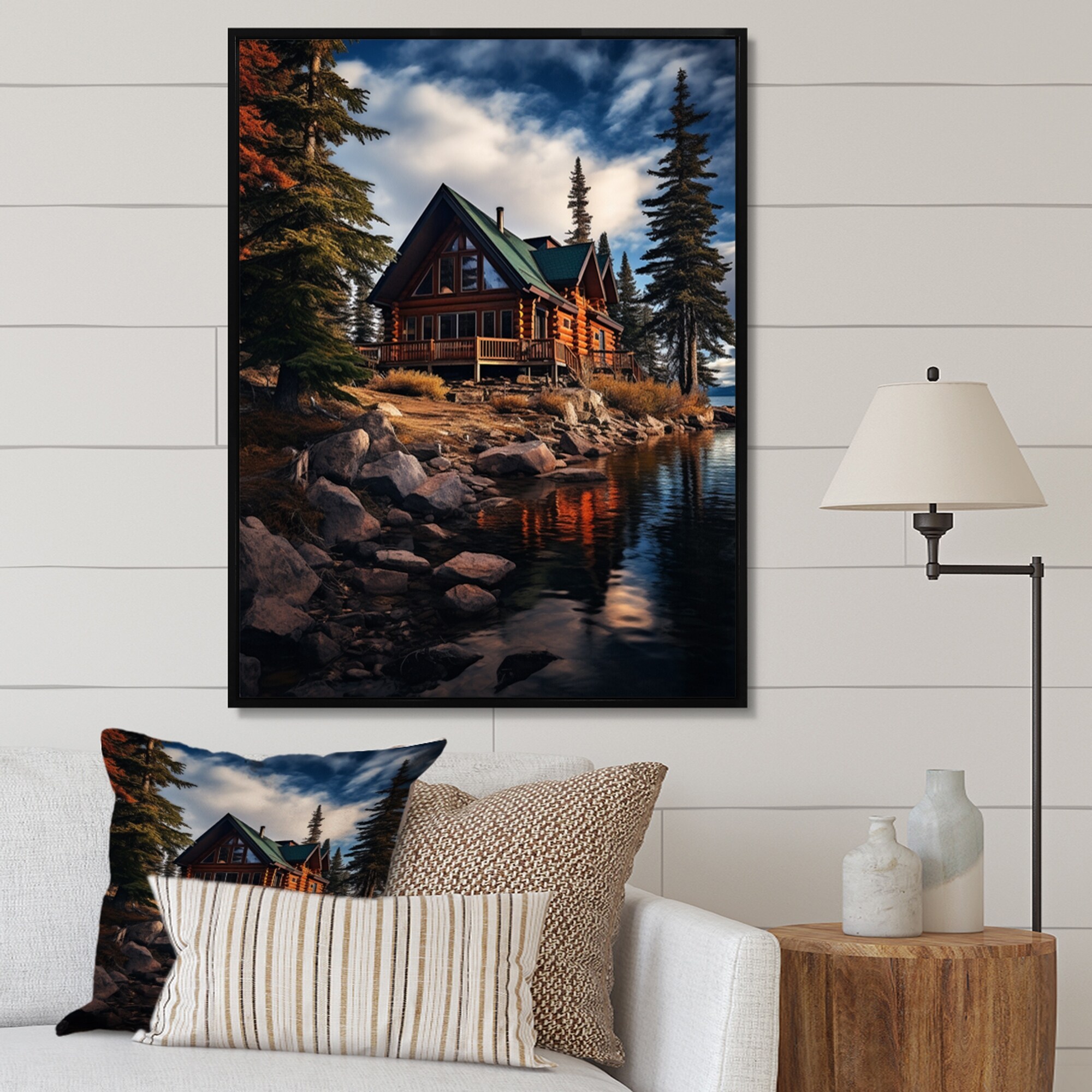 Designart "Canada Lakehouse Retreat I" Canada Framed Wall Art Living Room