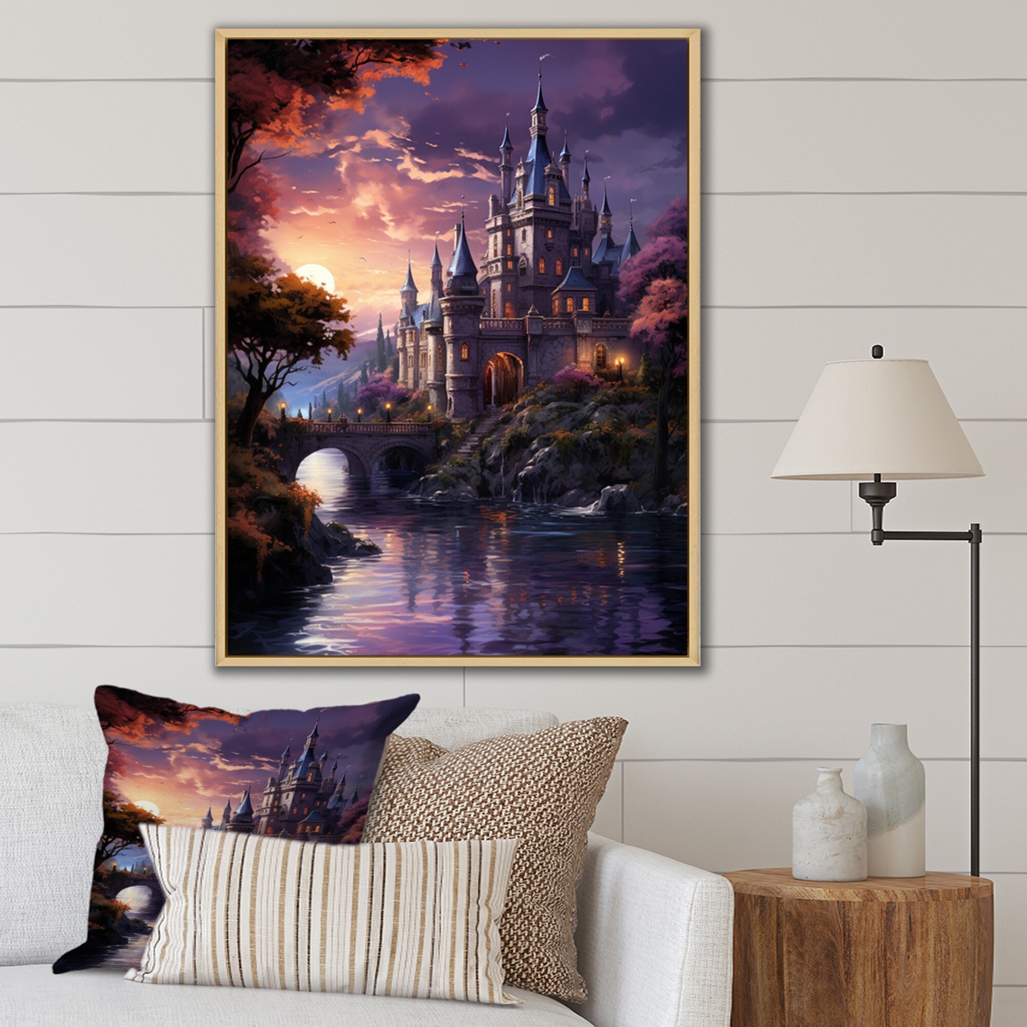 Designart "Castles Twilight Majesty Deep II" Castles Framed Wall Art Living Room