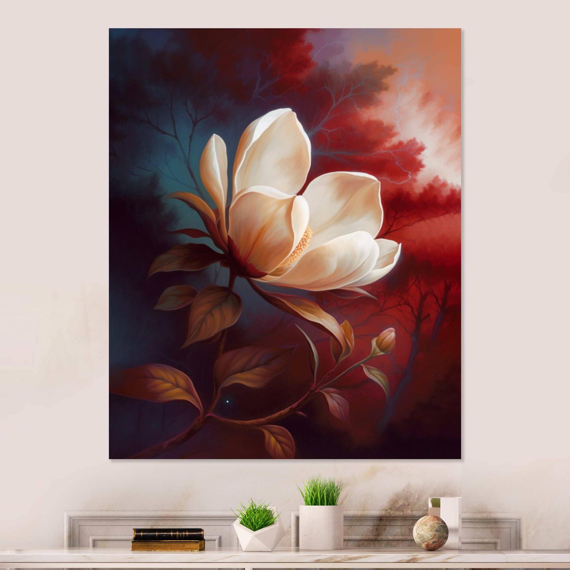 Designart "Cream Magnolia Dreams II" Floral Magnolias Metal Wall Art