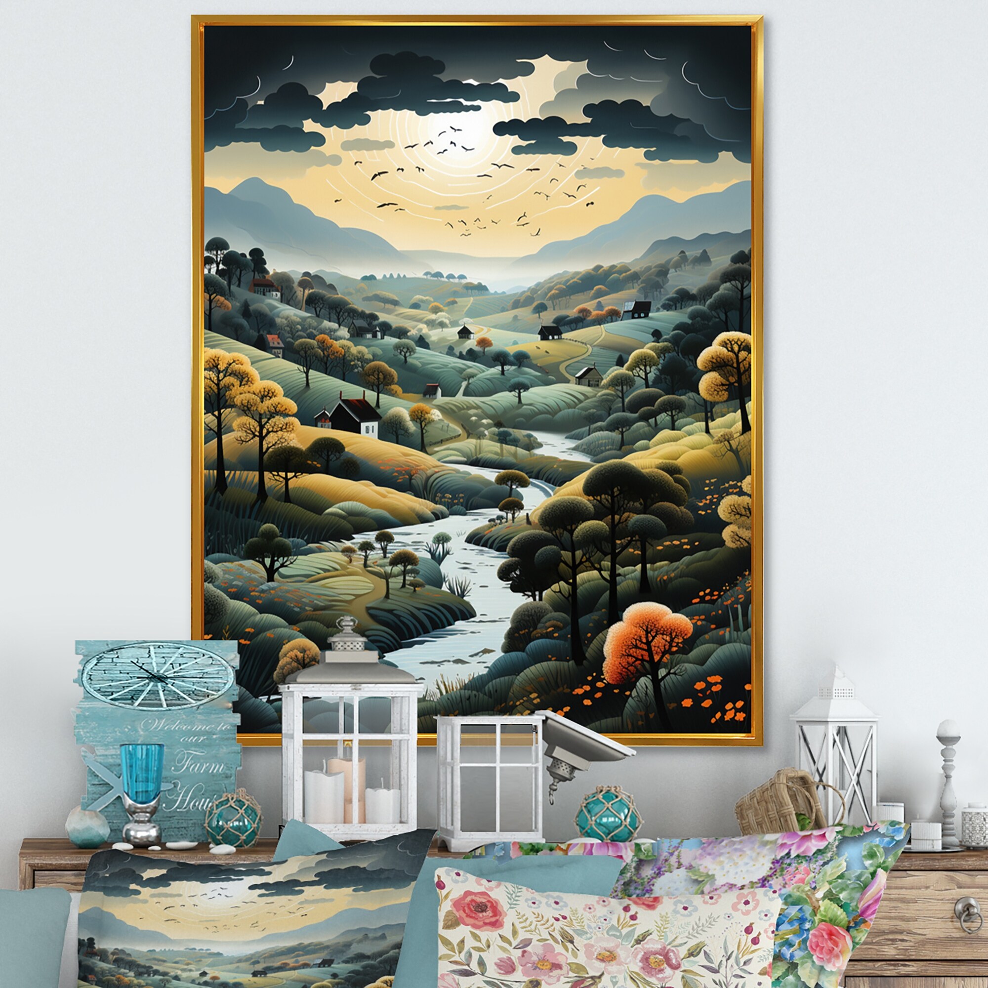 Designart "Countryside Misty Morning an I" Countryside Framed Canvas Wall Art